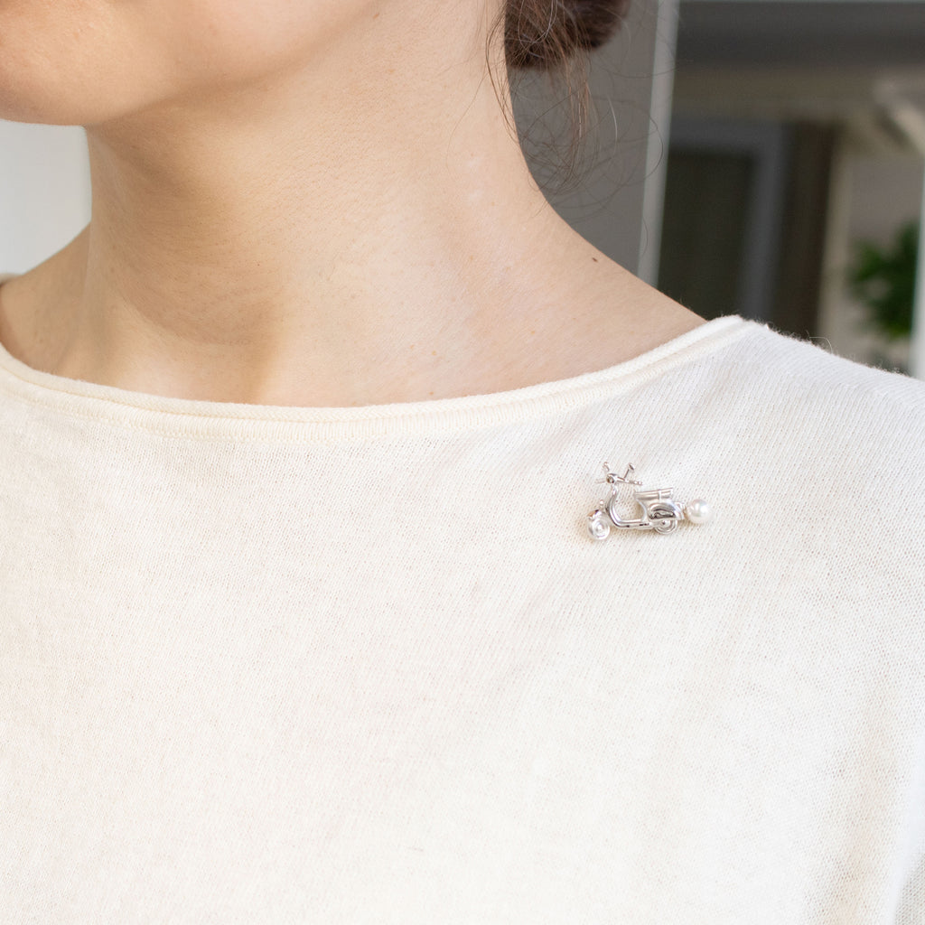 気候がよくなるこれからの季節のおでかけにぴったりなスクーターをモチーフにしたピンブローチです。