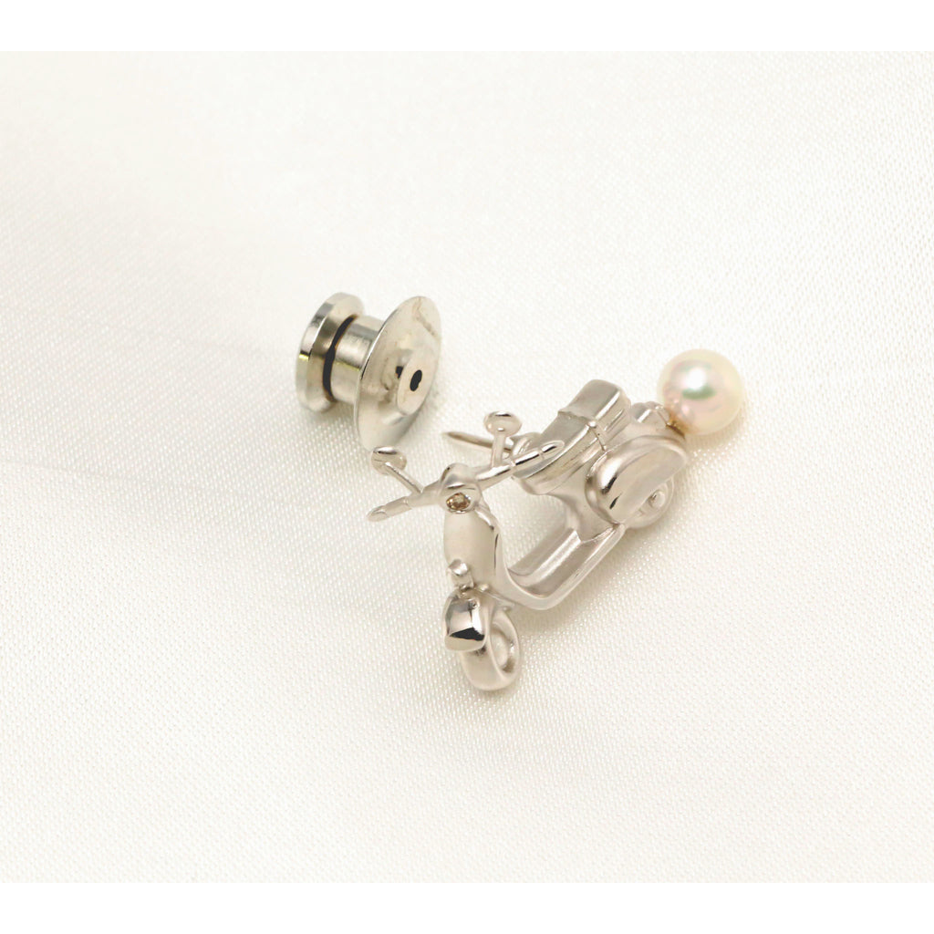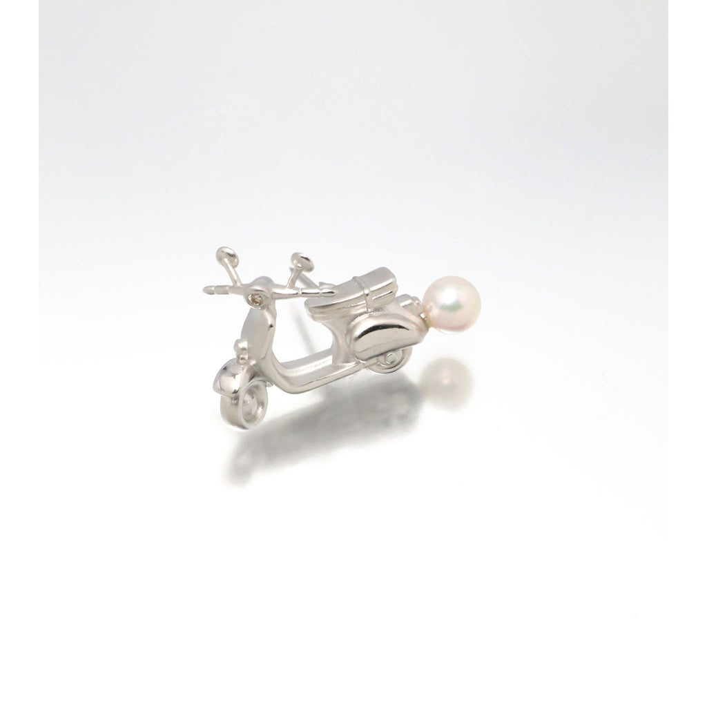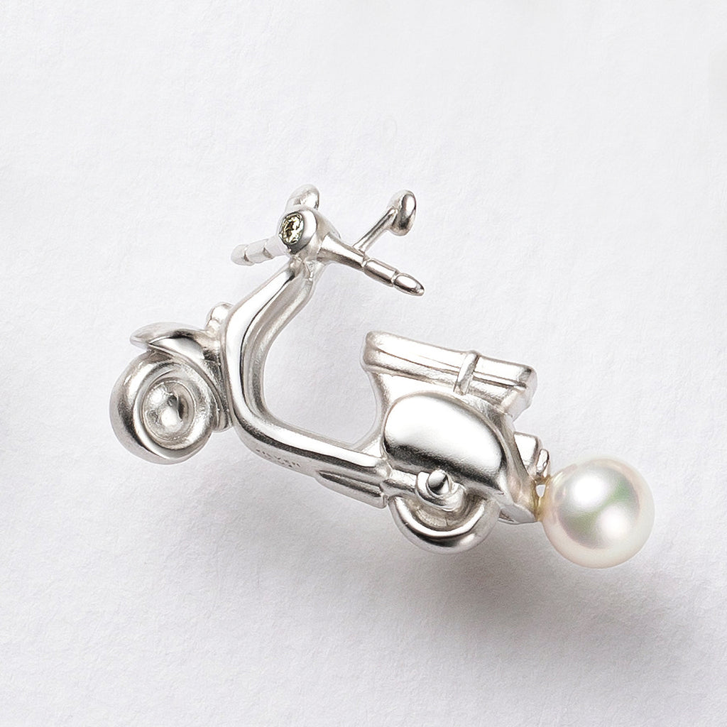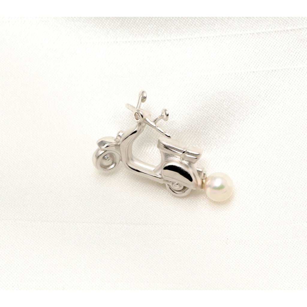 ヘッドライトにはキラッと輝くメレダイヤをセット。スクーターの後ろ部分には5mmのアコヤパールを1珠留めて、上品な雰囲気に仕上げました。
