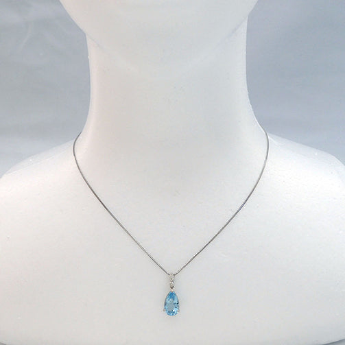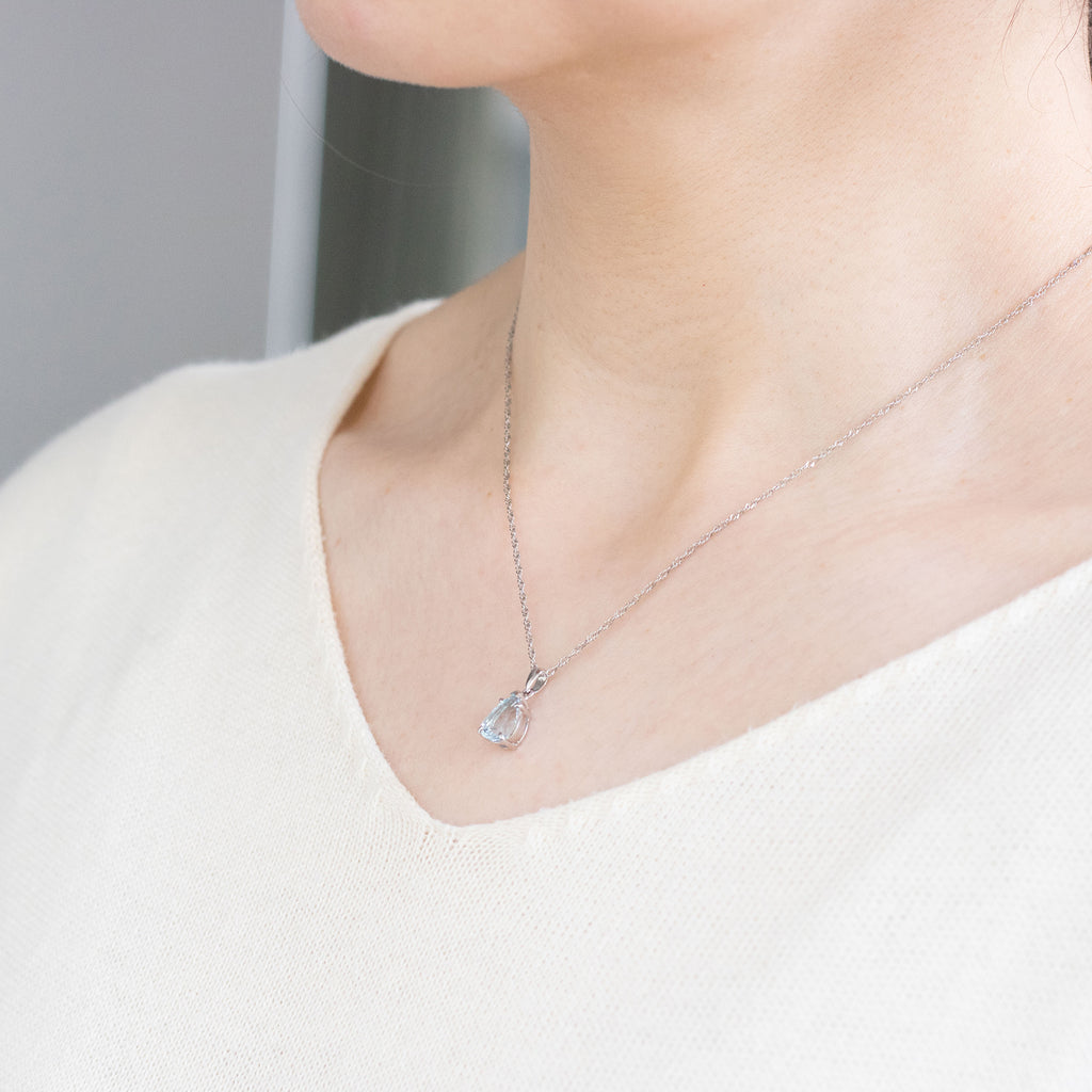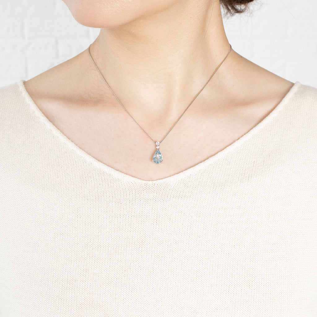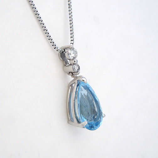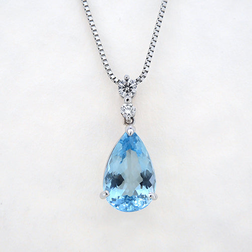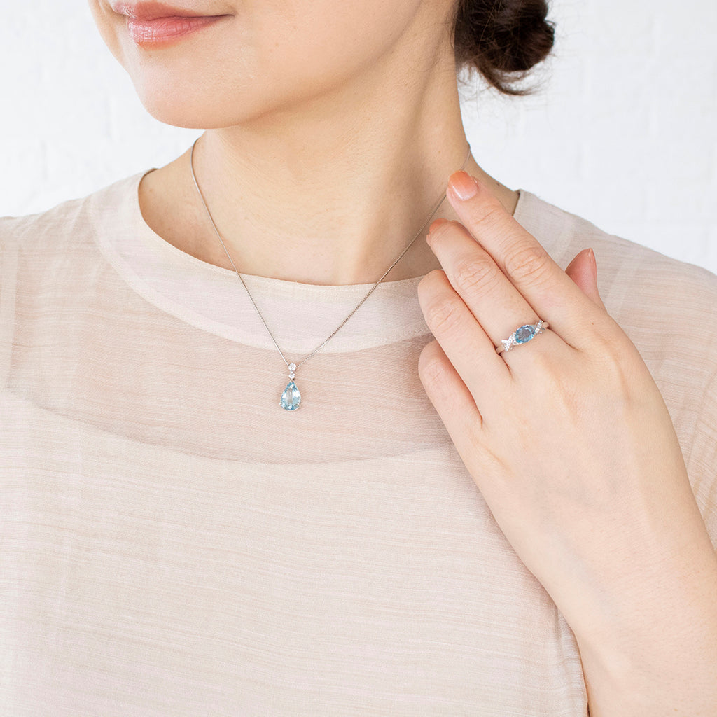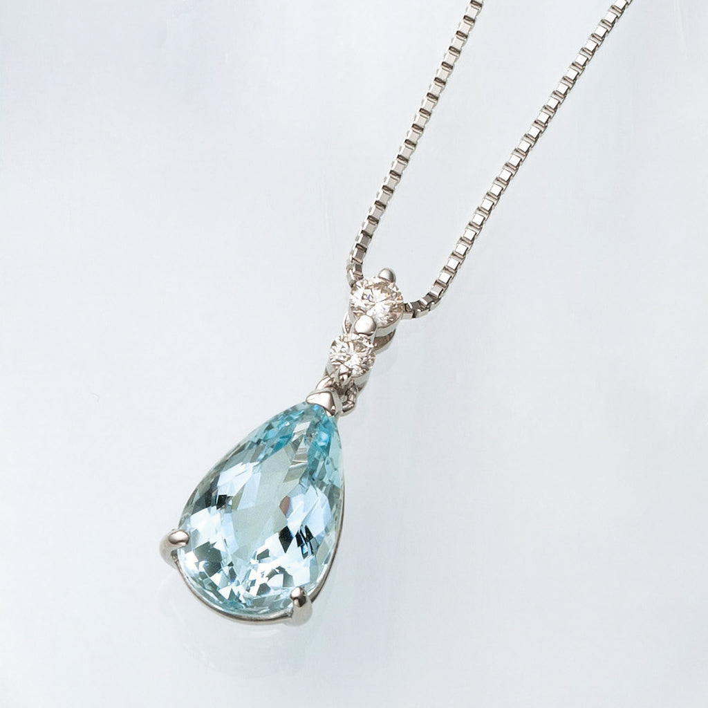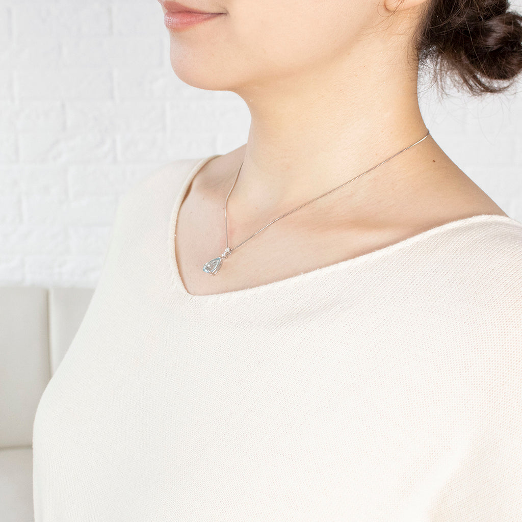 大粒2ctのペアシェイプのアクアマリンが胸元で瑞々しい輝きを放ちます。