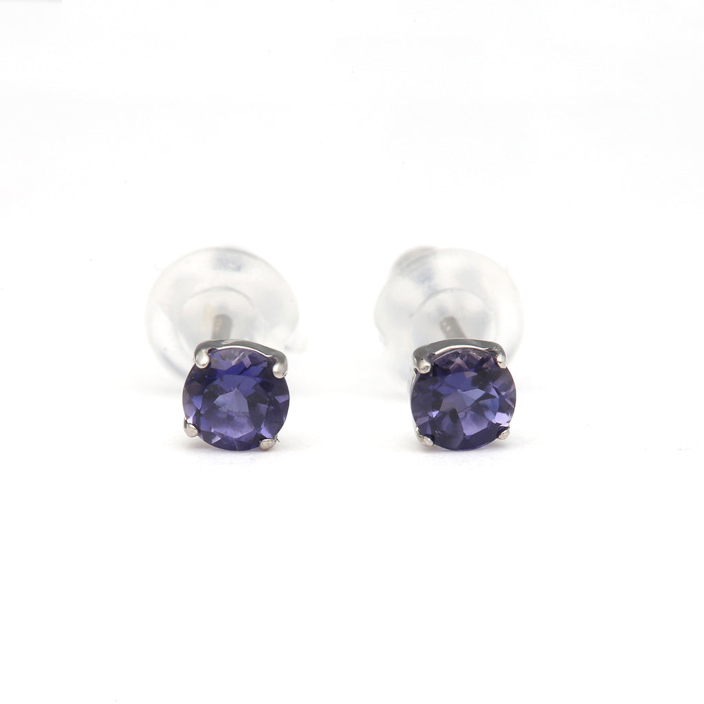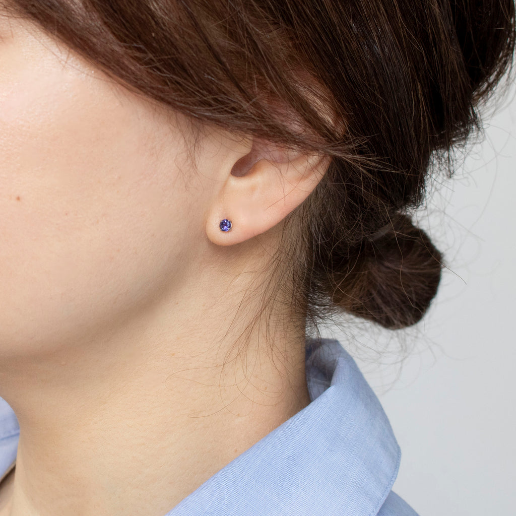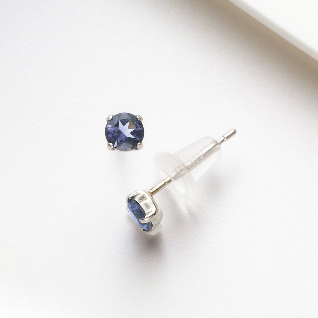 石を正面から見た時に美しいすみれ色が現れるようにカットされたアイオライトを厳選して、シンプルなスタッドタイプのピアスにしました。