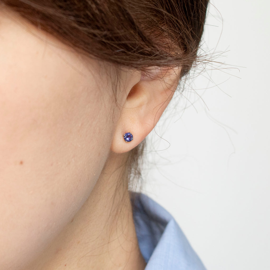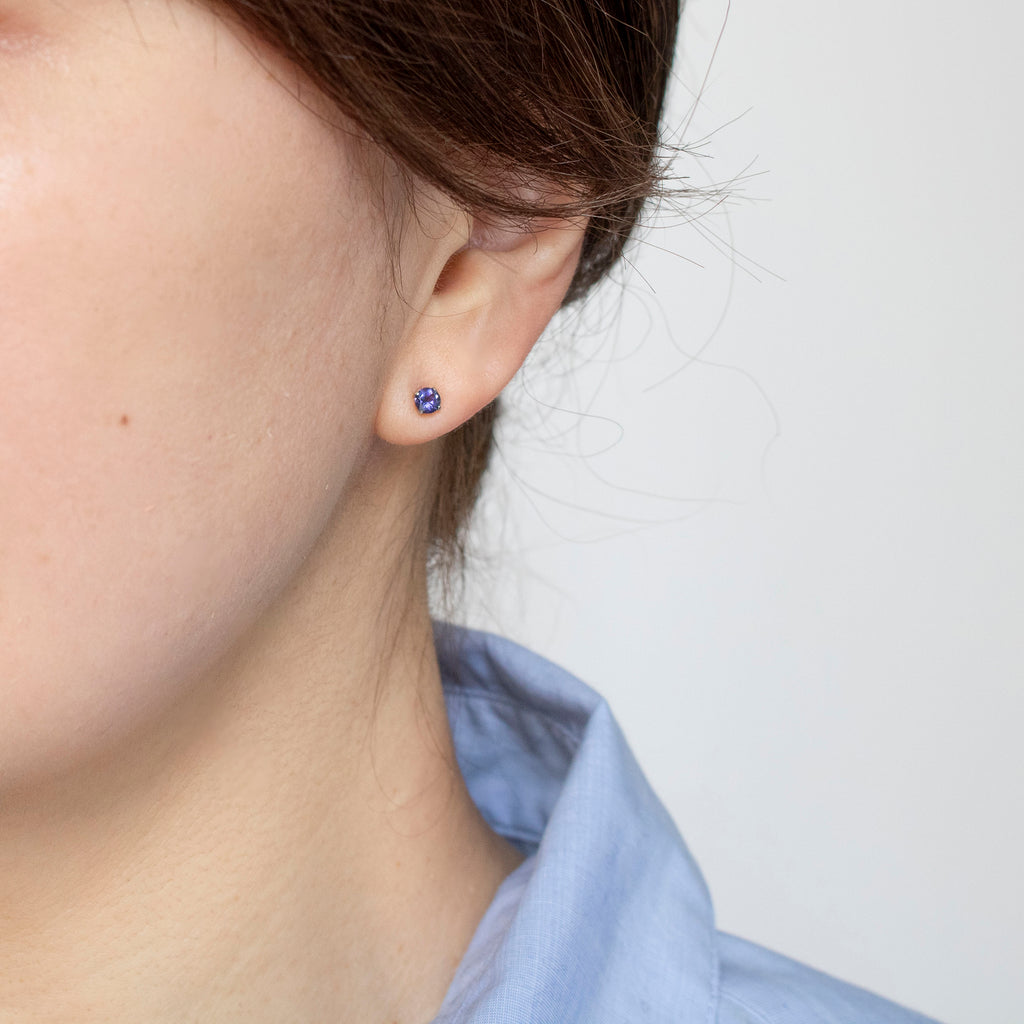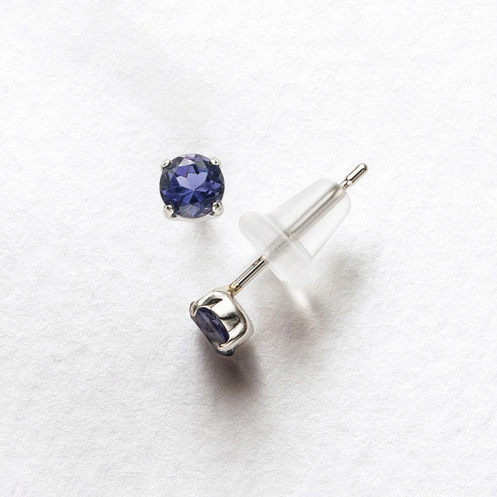 石を正面から見た時に美しいすみれ色が現れるようにカットされたアイオライトを厳選して、シンプルなスタッドタイプのピアスにしました。