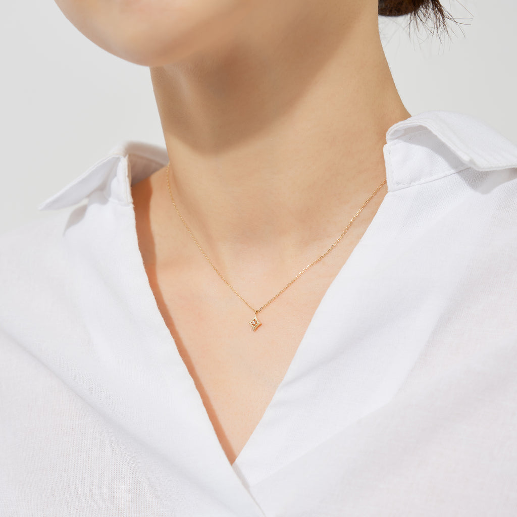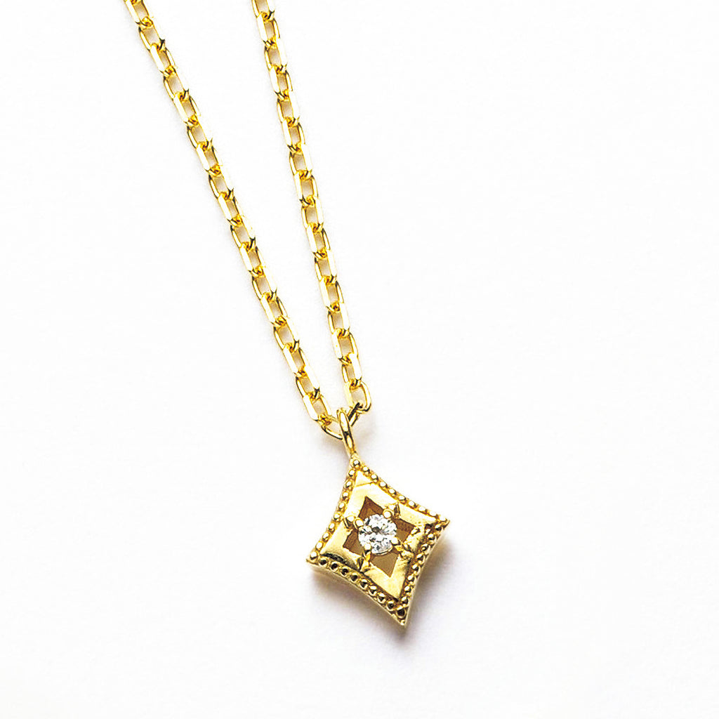 10金イエローゴールド製のダイヤ形のネックレスの中央にメレダイヤを1石セットしました。
