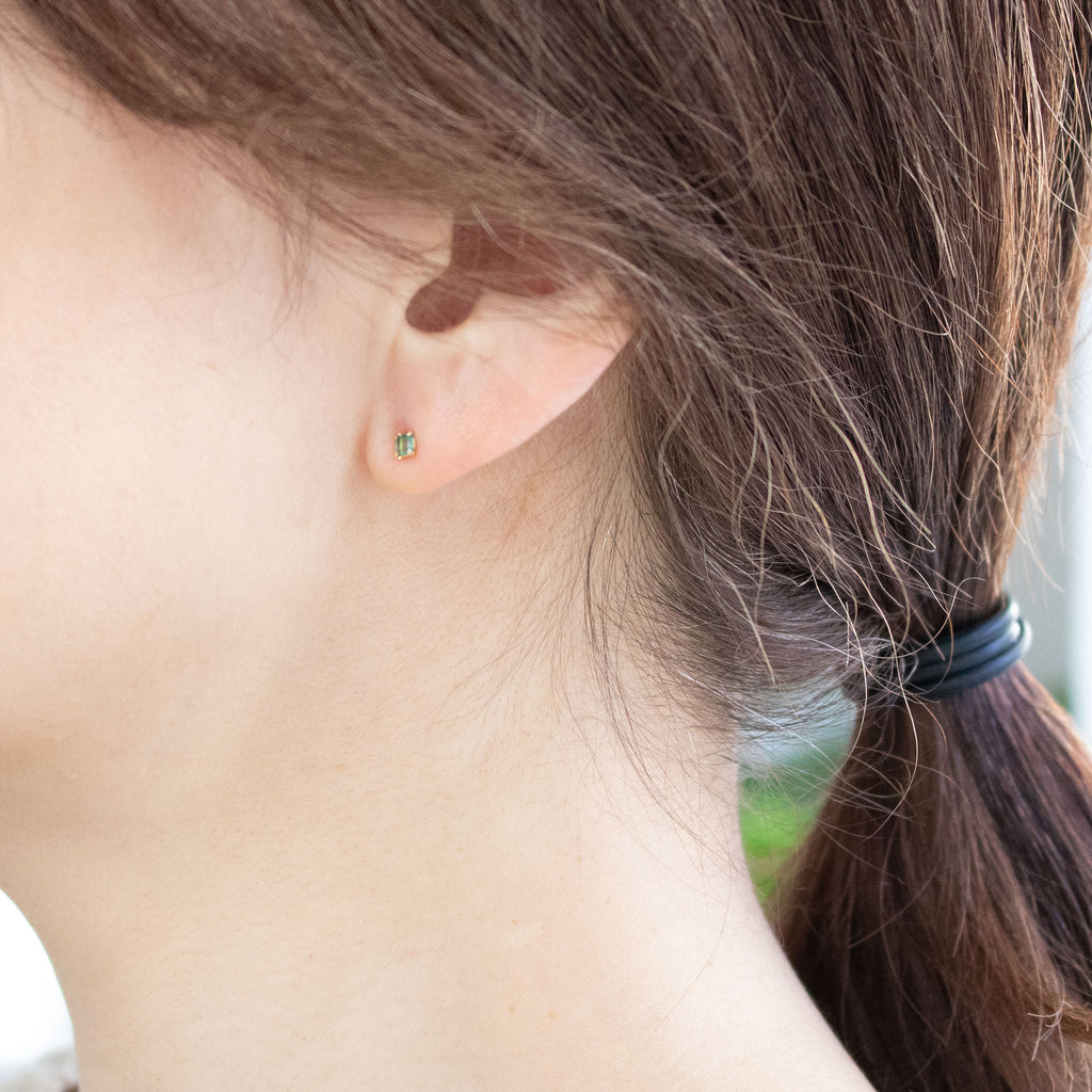 キラッと輝くエメラルドのピアスをデイリーにお楽しみください。
