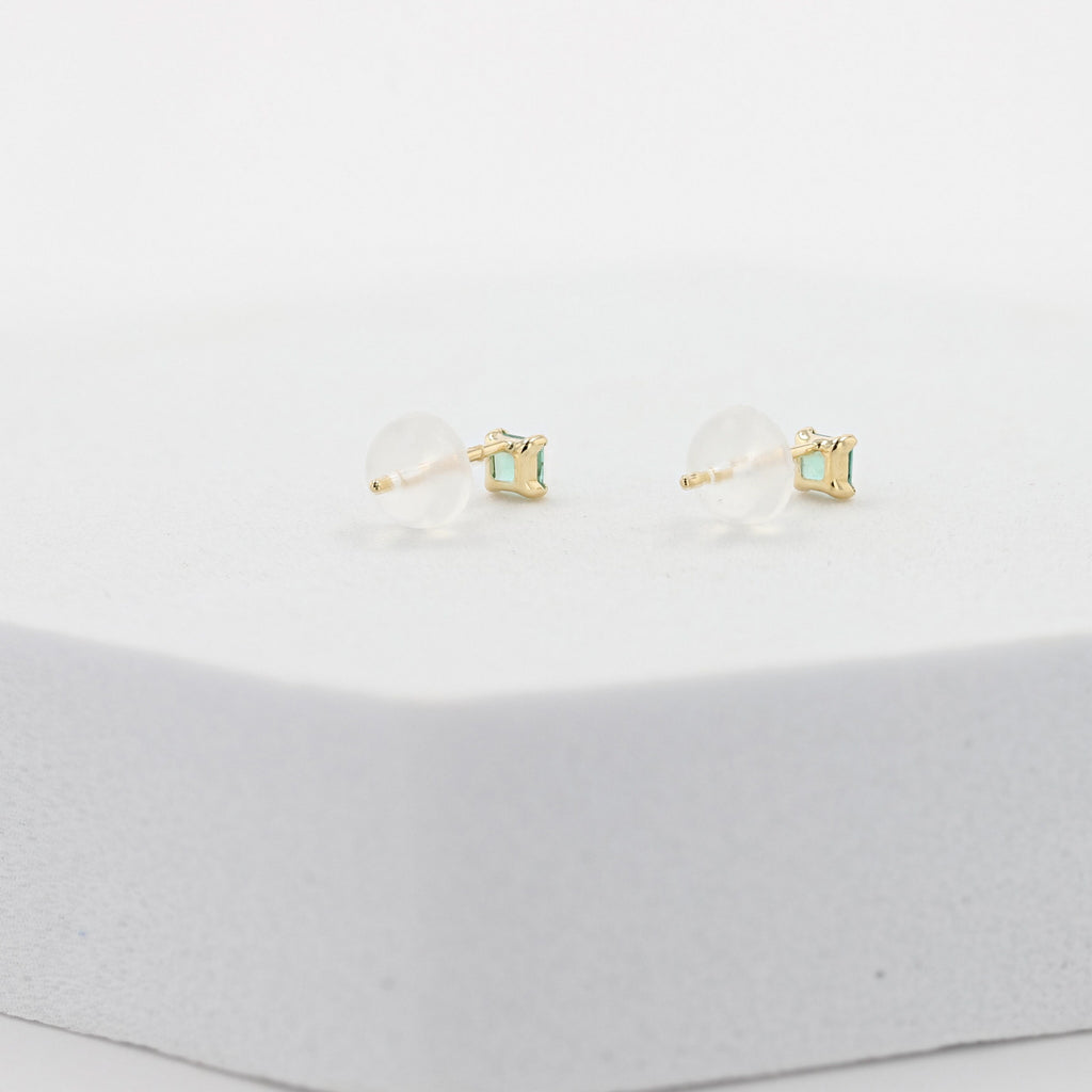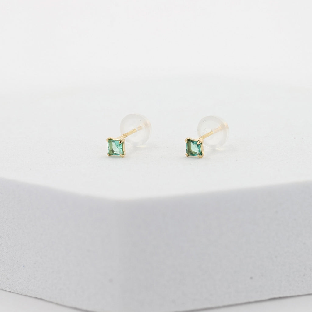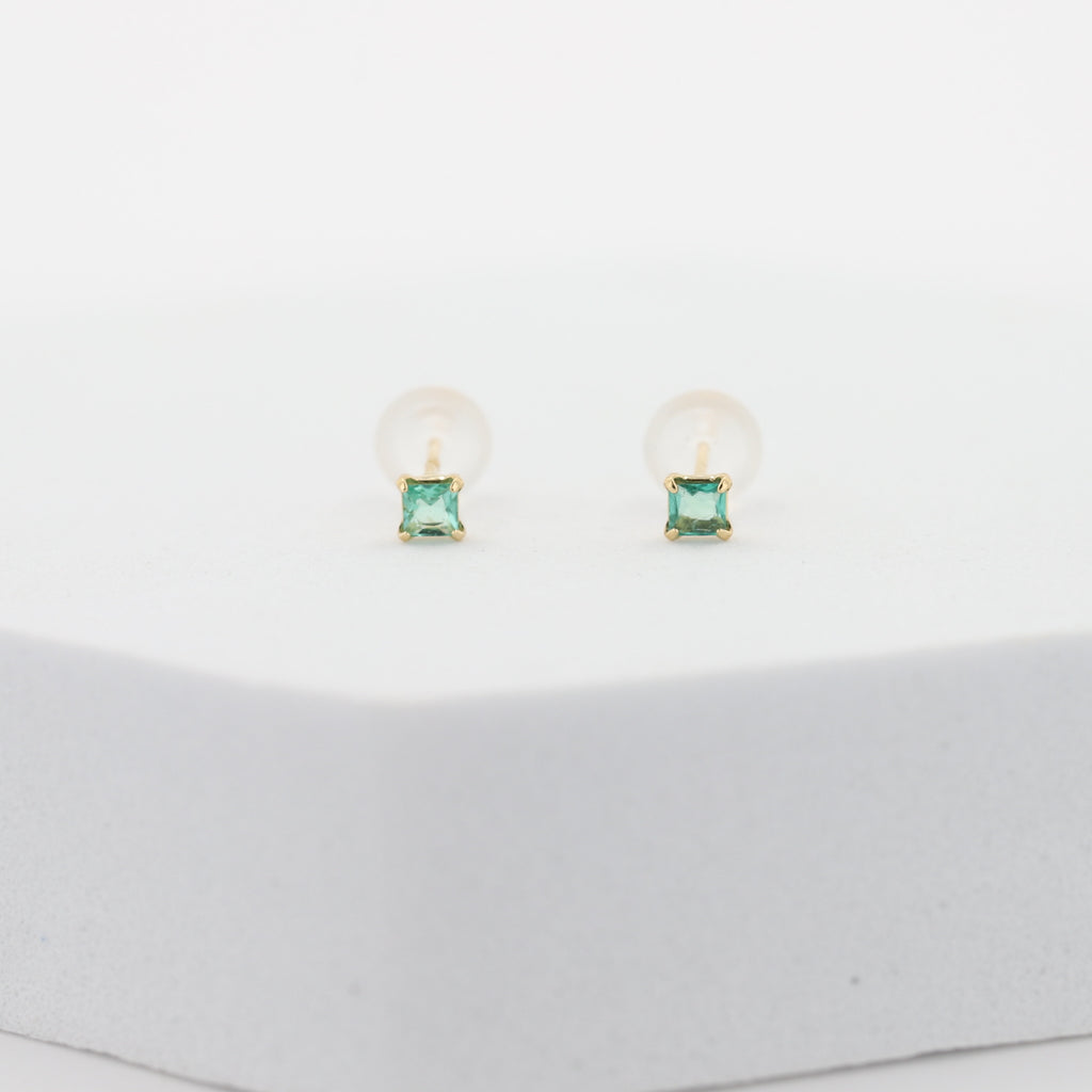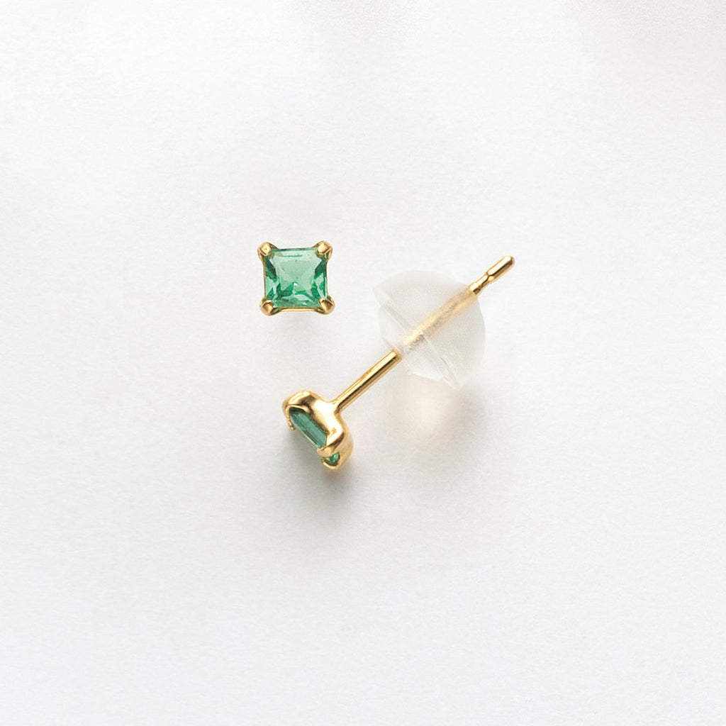 【 5月の誕生石 スクエアカットエメラルドピアス 】