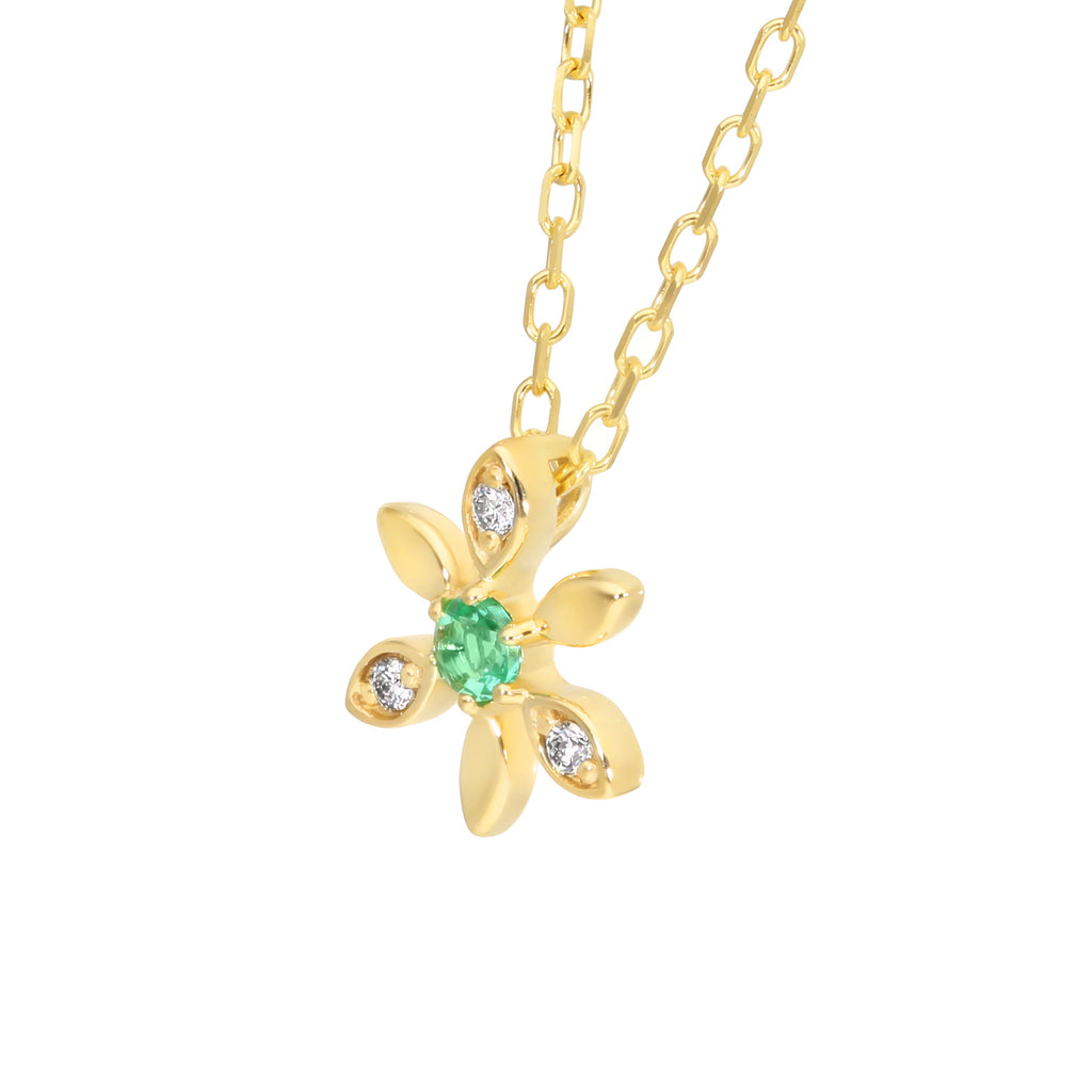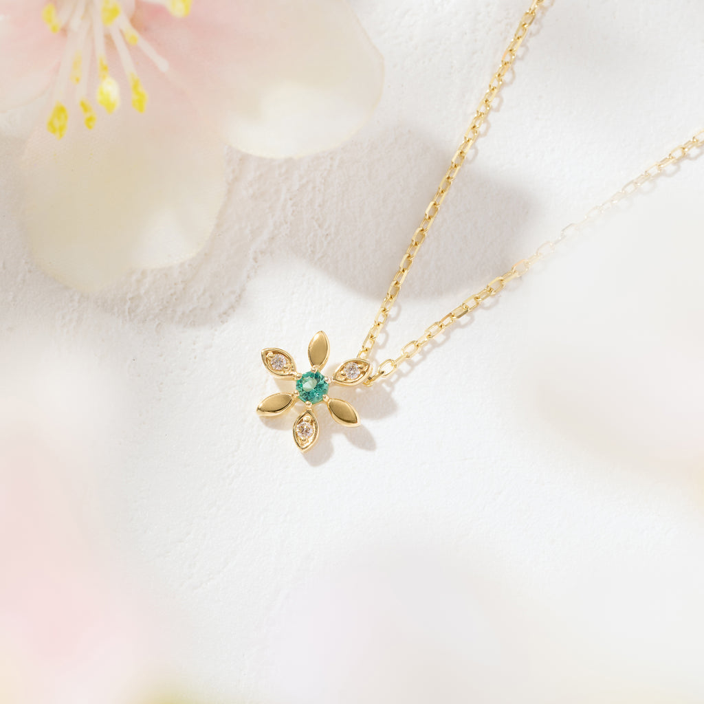 【 5月の誕生石 フラワーモチーフエメラルドネックレス 】