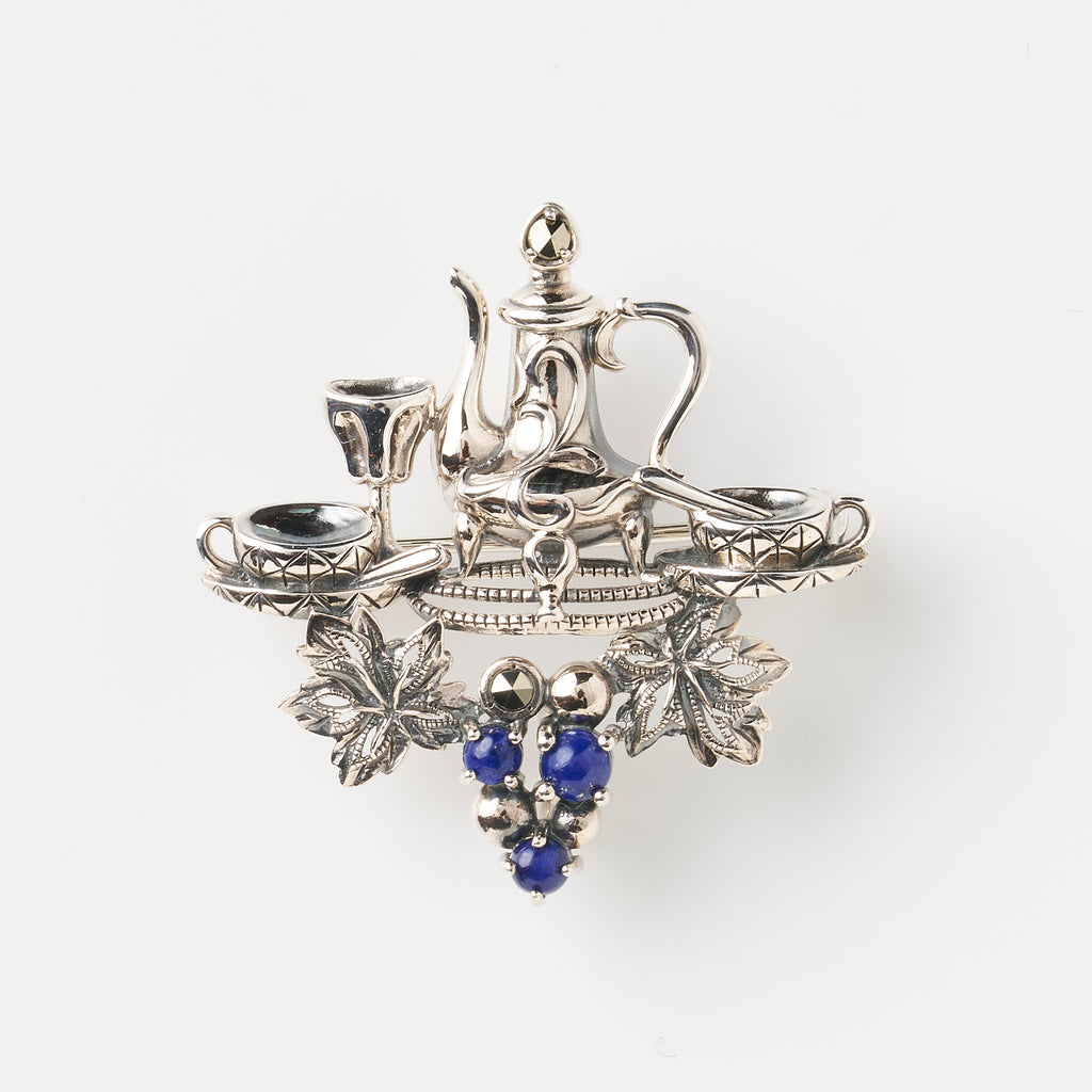 モネの名画「昼食」より、優雅な午後のひとときを思わせるティーセットをデザインしたブローチ兼ペンダントトップです。