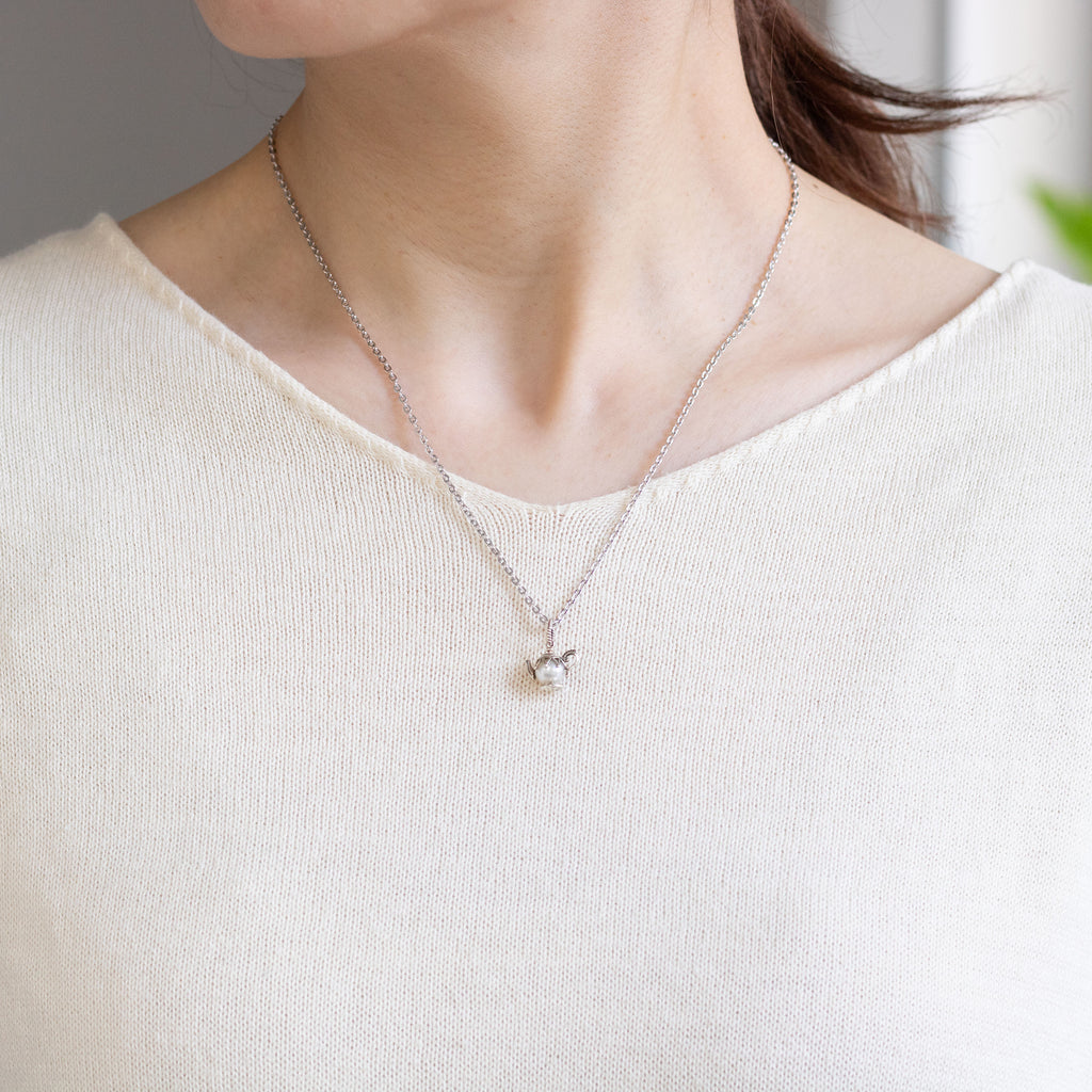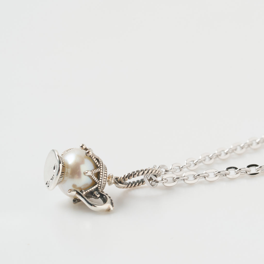 ティーポットの丸みを帯びたボディには上品な光沢感を見せる淡水パールをセットしました。