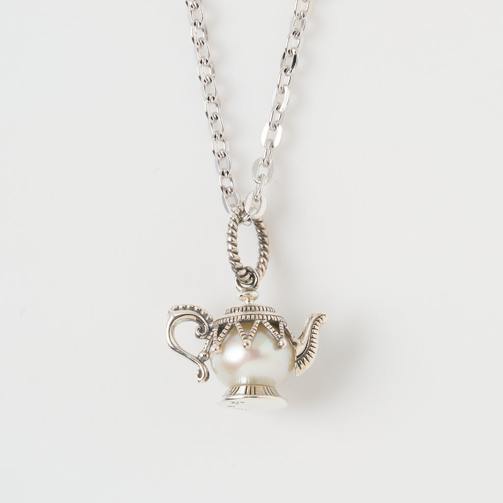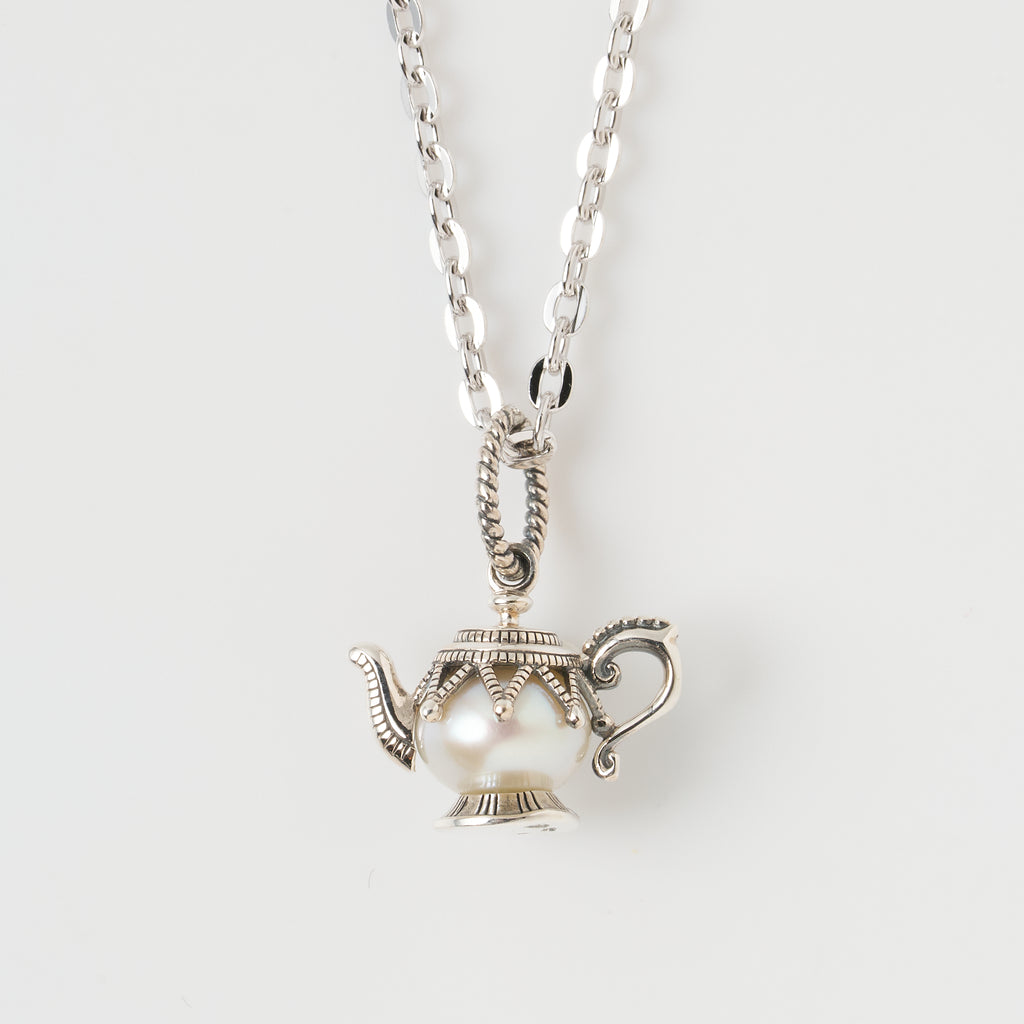 アンティークのシルバー製ティーポットを思わせる、ころんと可愛らしいフォルムのネックレスです。