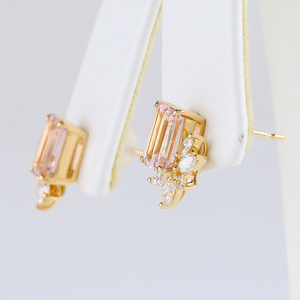 【 素晴らしい透明感と輝き! ステップカット モルガナイトピアス 】