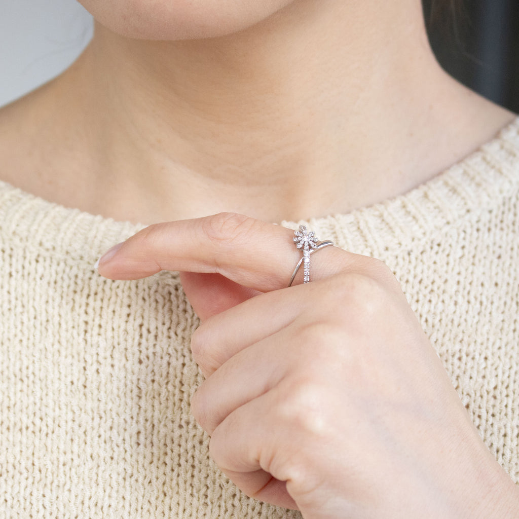 手元に可憐な花が咲いたようなデザインが素敵なリングです。