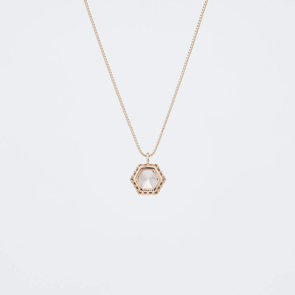 珍しい六角形=ヘキサゴンカットのモルガナイトを使ったネックレスです。