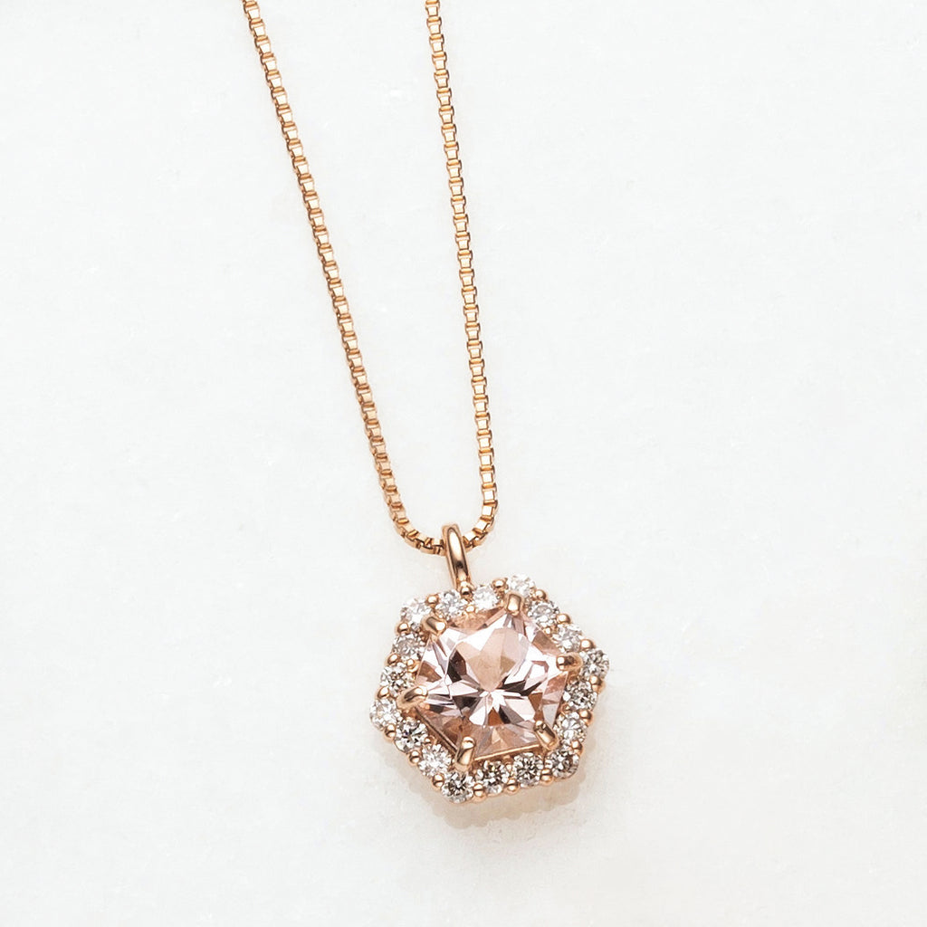 【 新たな4月の誕生石 ヘキサゴンカットモルガナイトネックレス 】