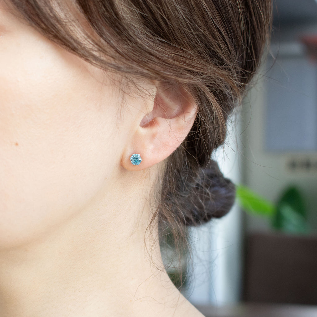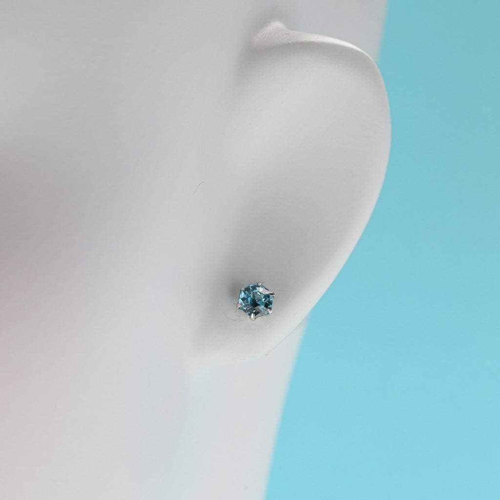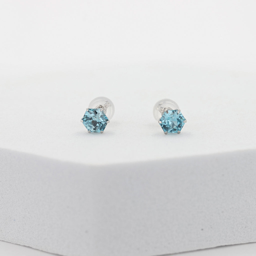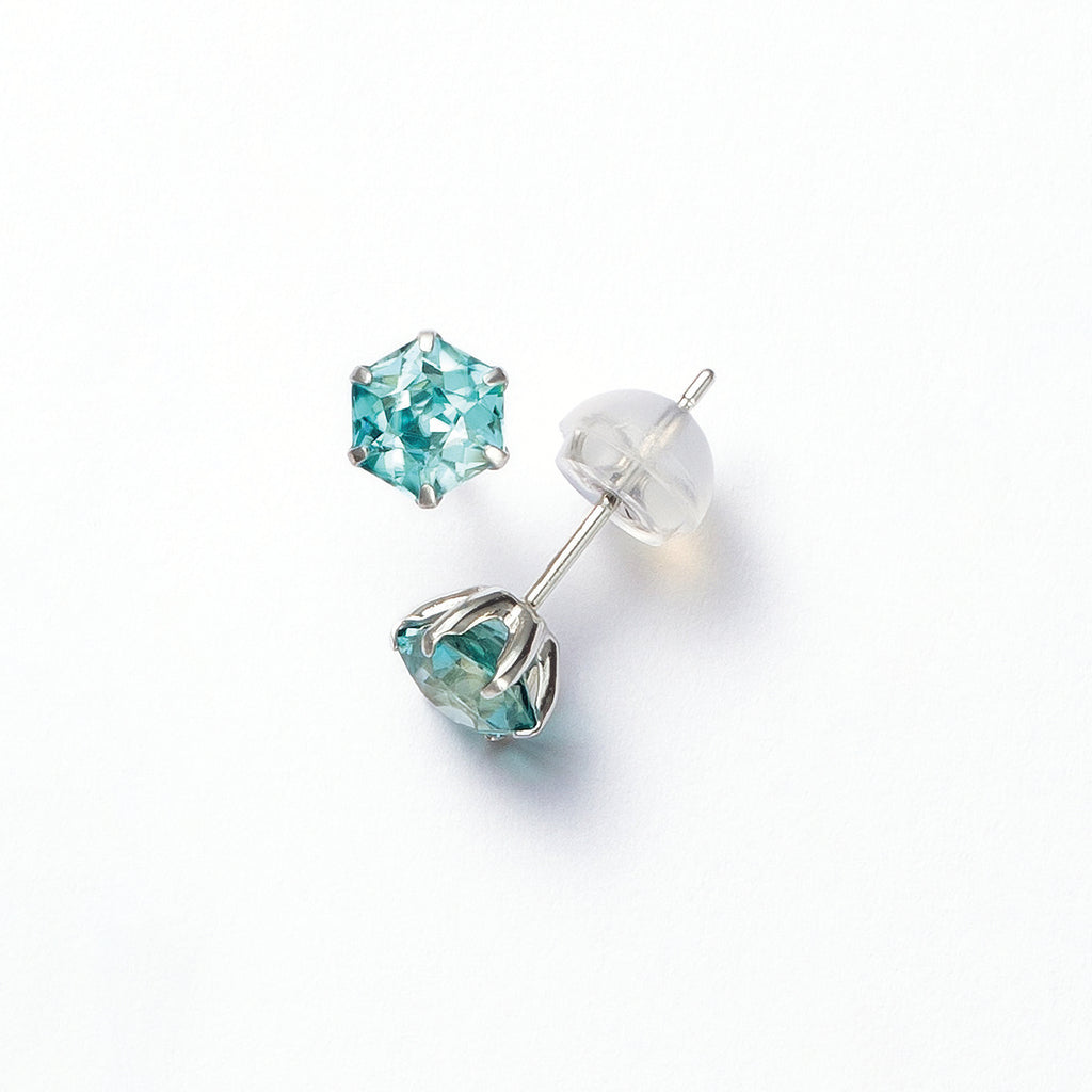 珍しい六角形=ヘキサゴンカットのブルージルコンを使ったピアスです。