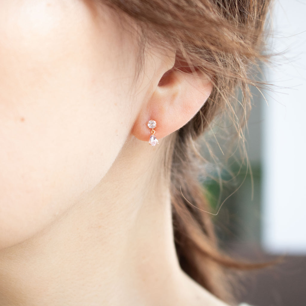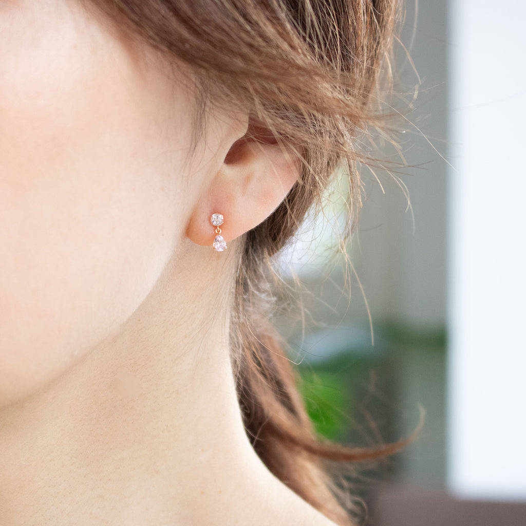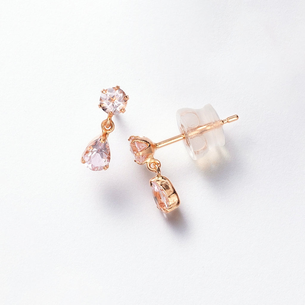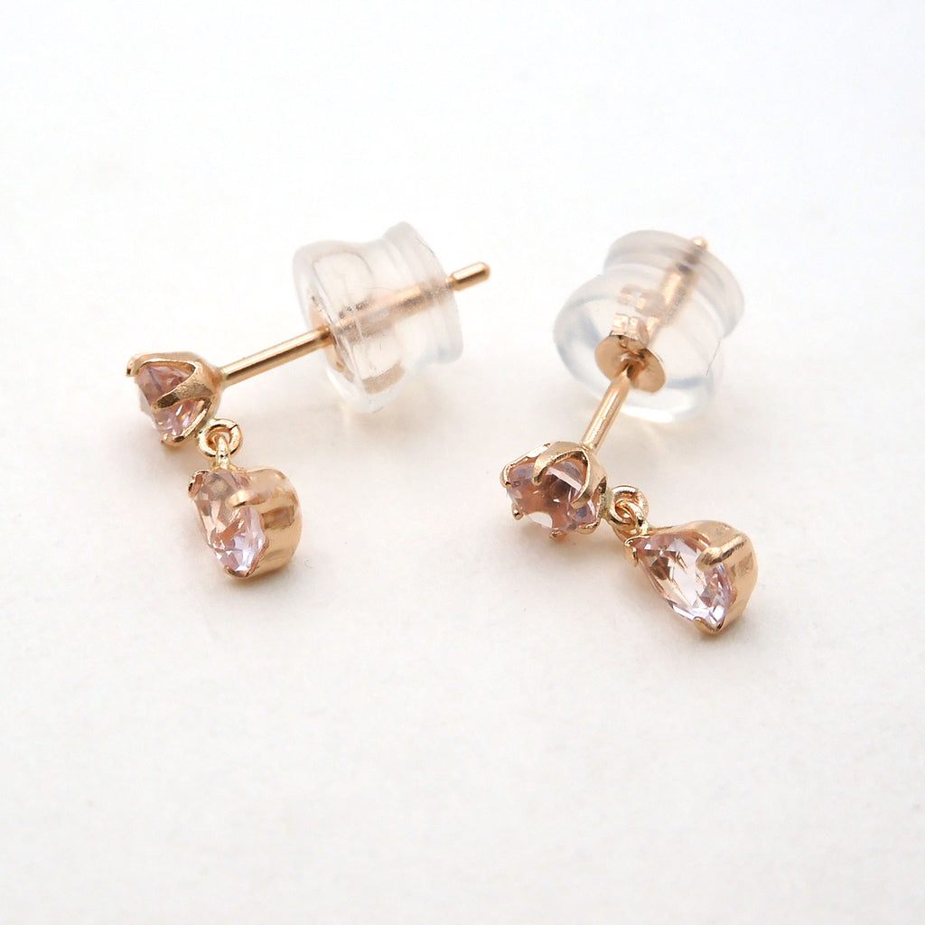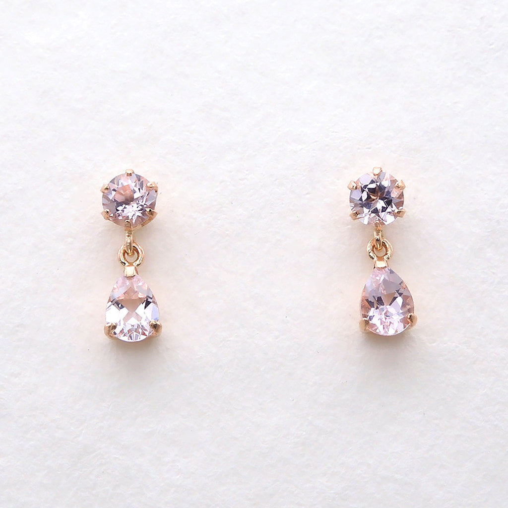 優しいピンク色はまさに桜ピンク。2種類のカットのモルガナイトを使用したピアスです。