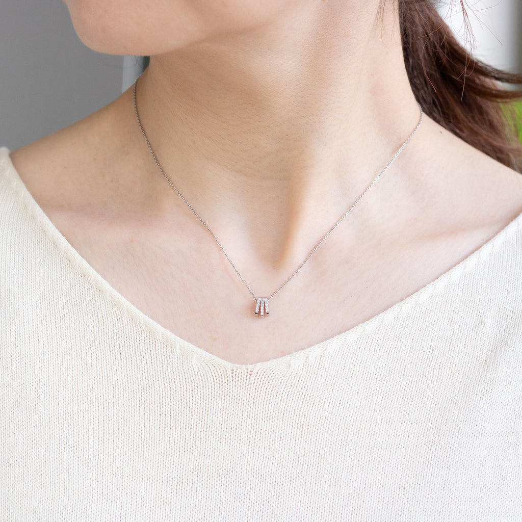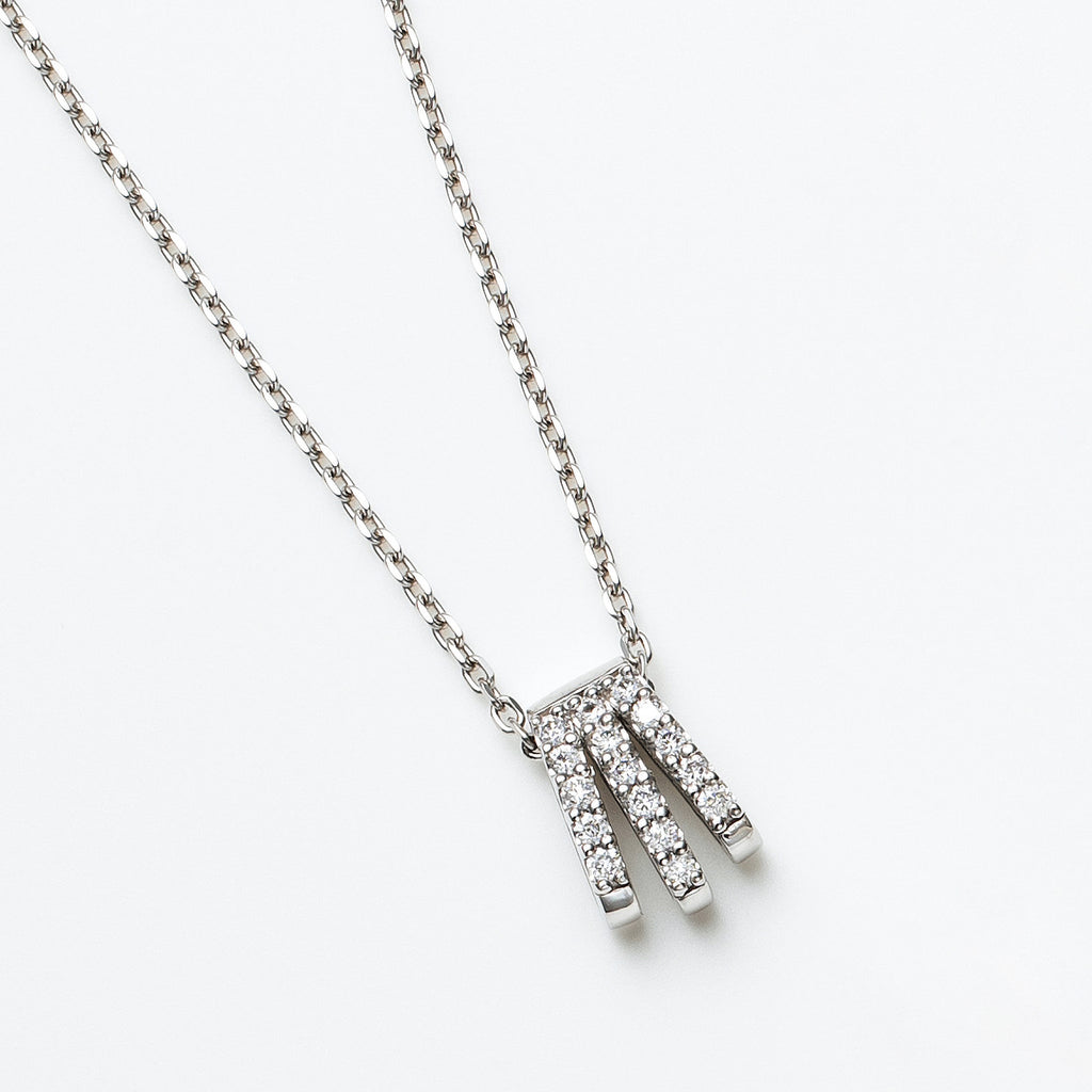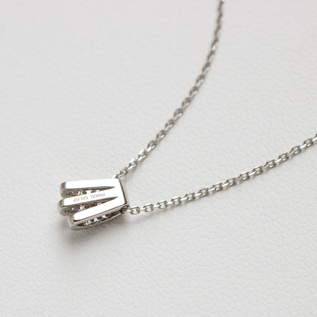 扇状に広がる3本のダイヤモンドラインが、胸元に軽やかな立体感をもたらすプラチナ製ネックレス。
