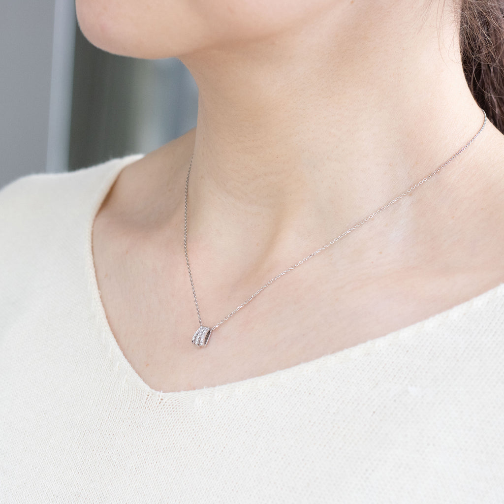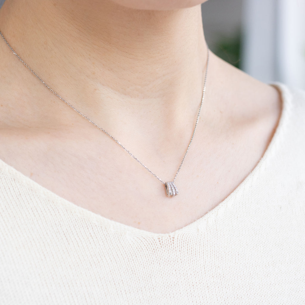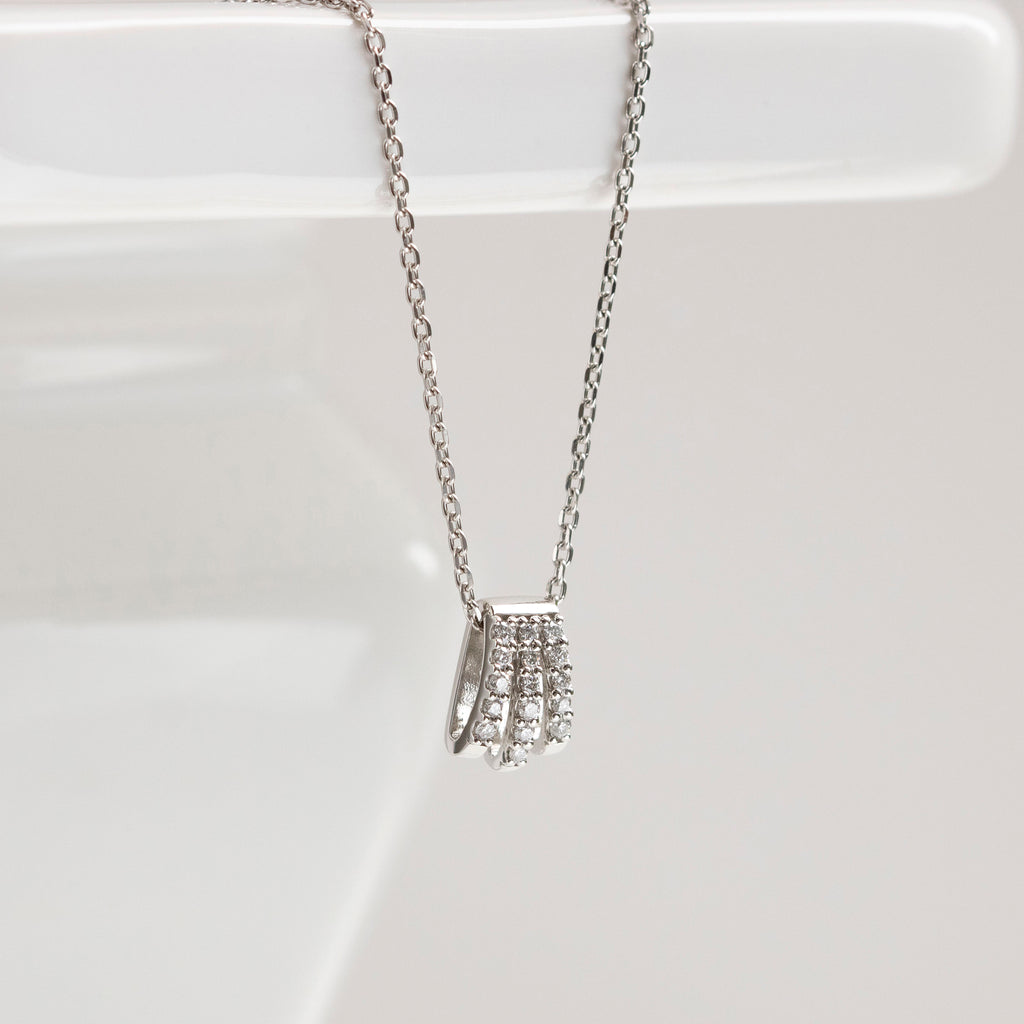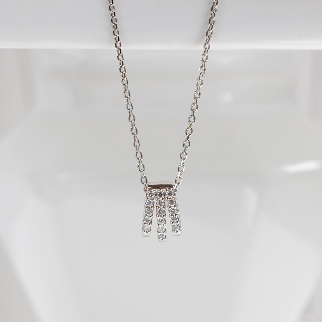 扇状に広がる3本のダイヤモンドラインが、胸元に軽やかな立体感をもたらすプラチナ製ネックレス。