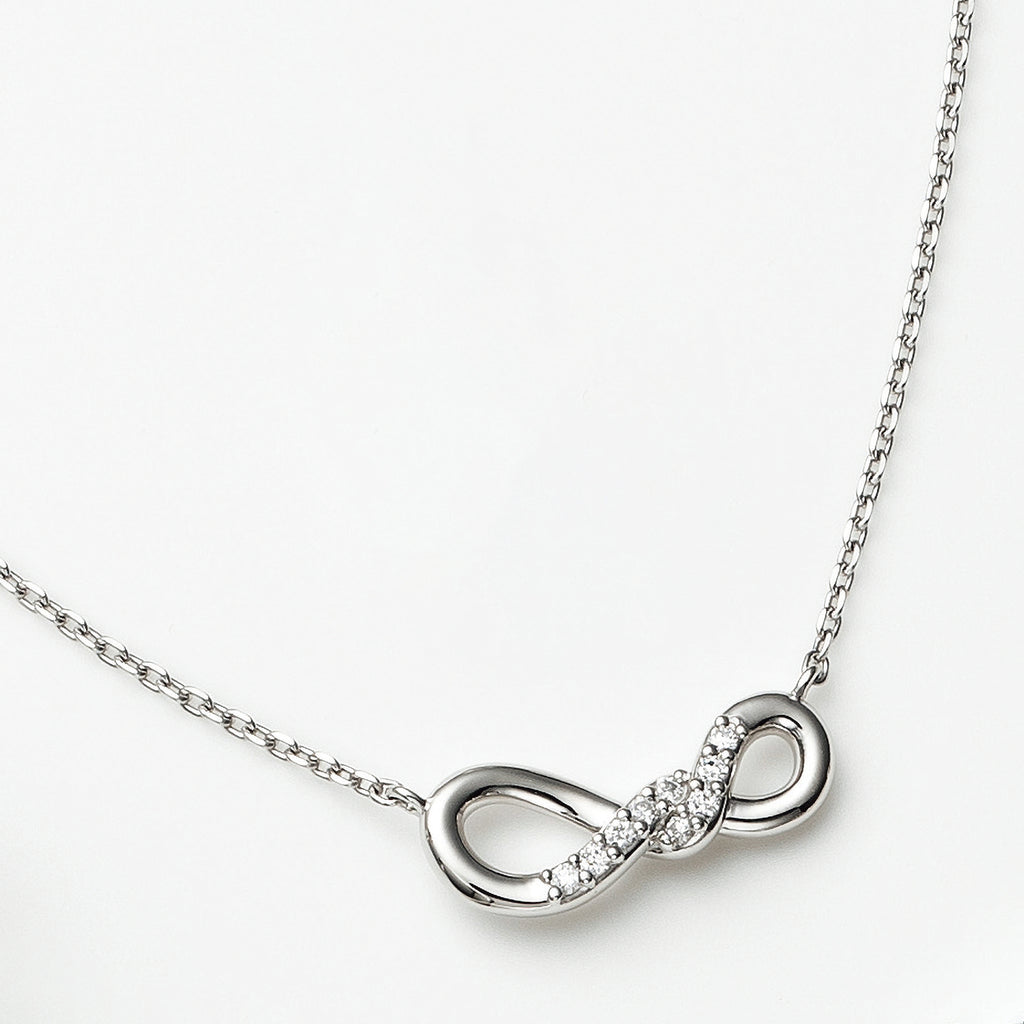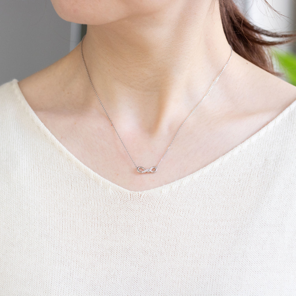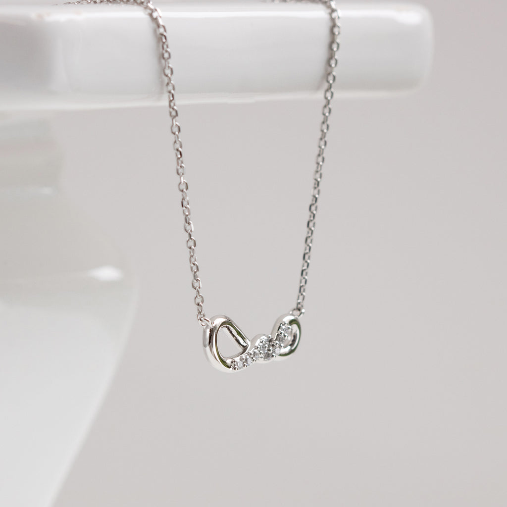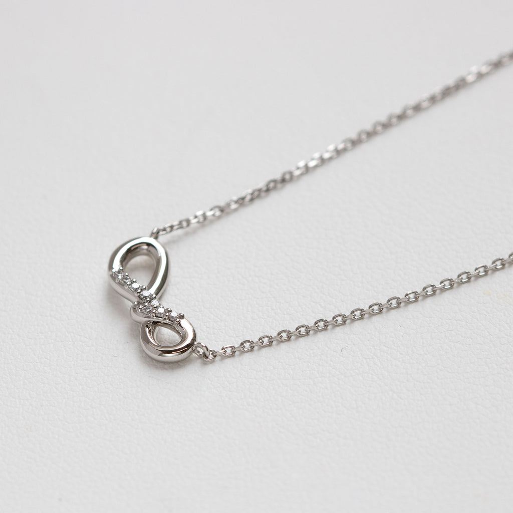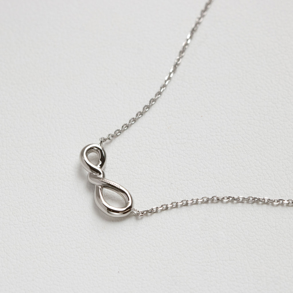 永遠を意味するインフィニティモチーフを、左右非対称のフォルムで表現したネックレス。