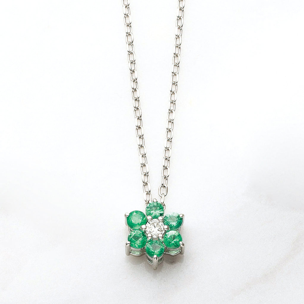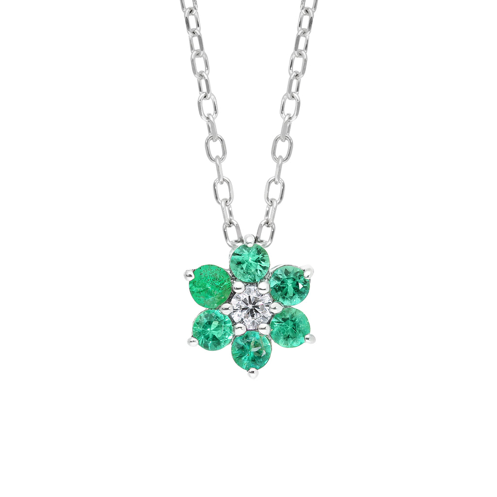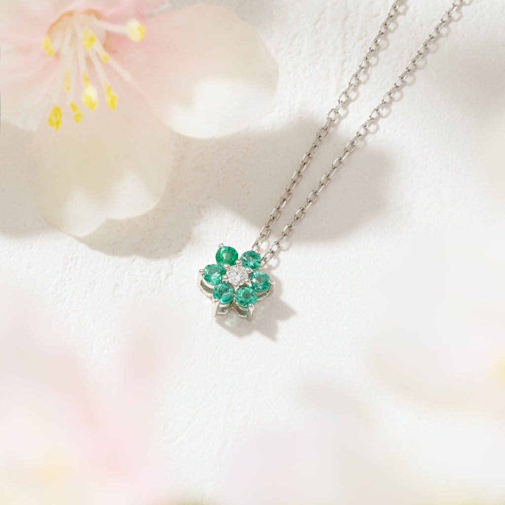 エメラルドを花びらに見立てた素敵なフラワーモチーフのネックレスです。