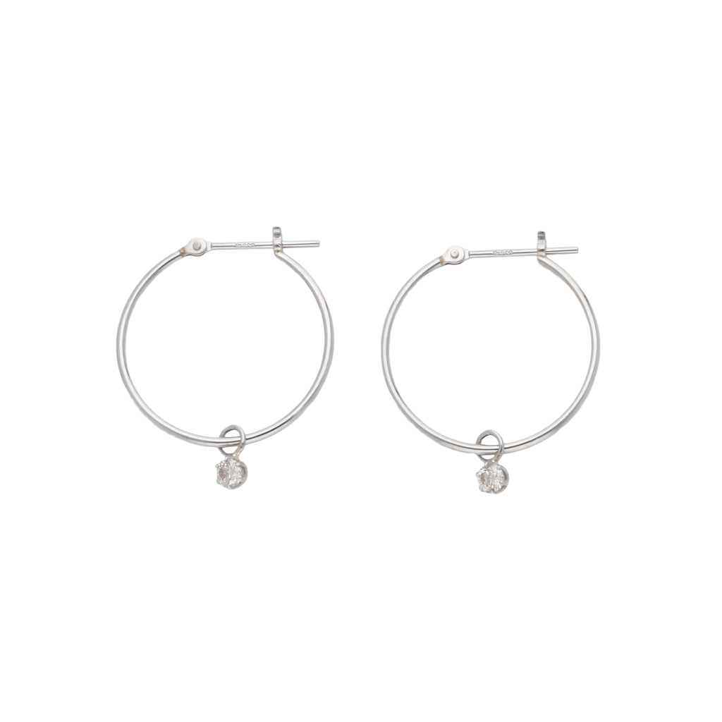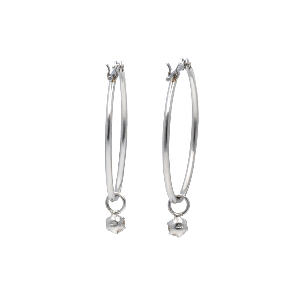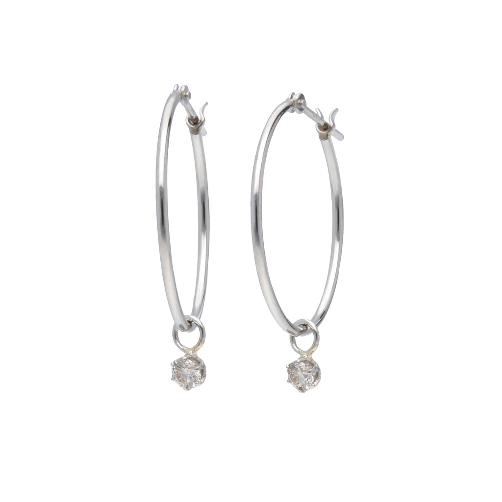 【 プラチナ製 ダイヤのチャーム付きフープピアス 】