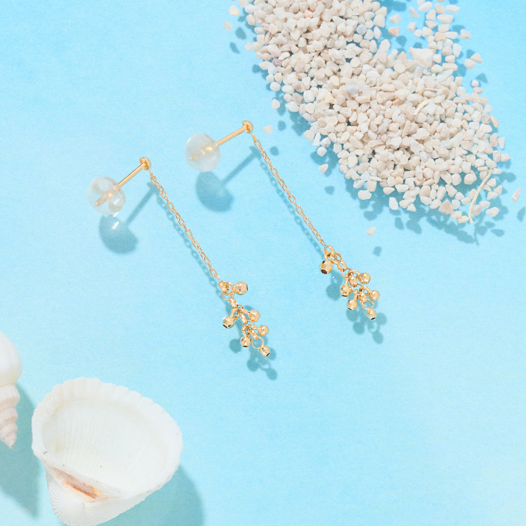 チェーンの先で房状になったカットボールが揺れるピアスです。