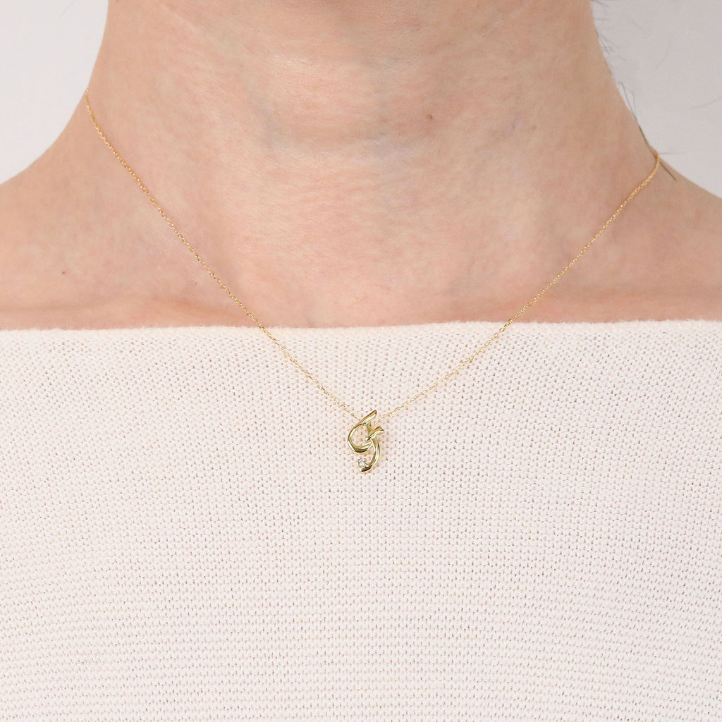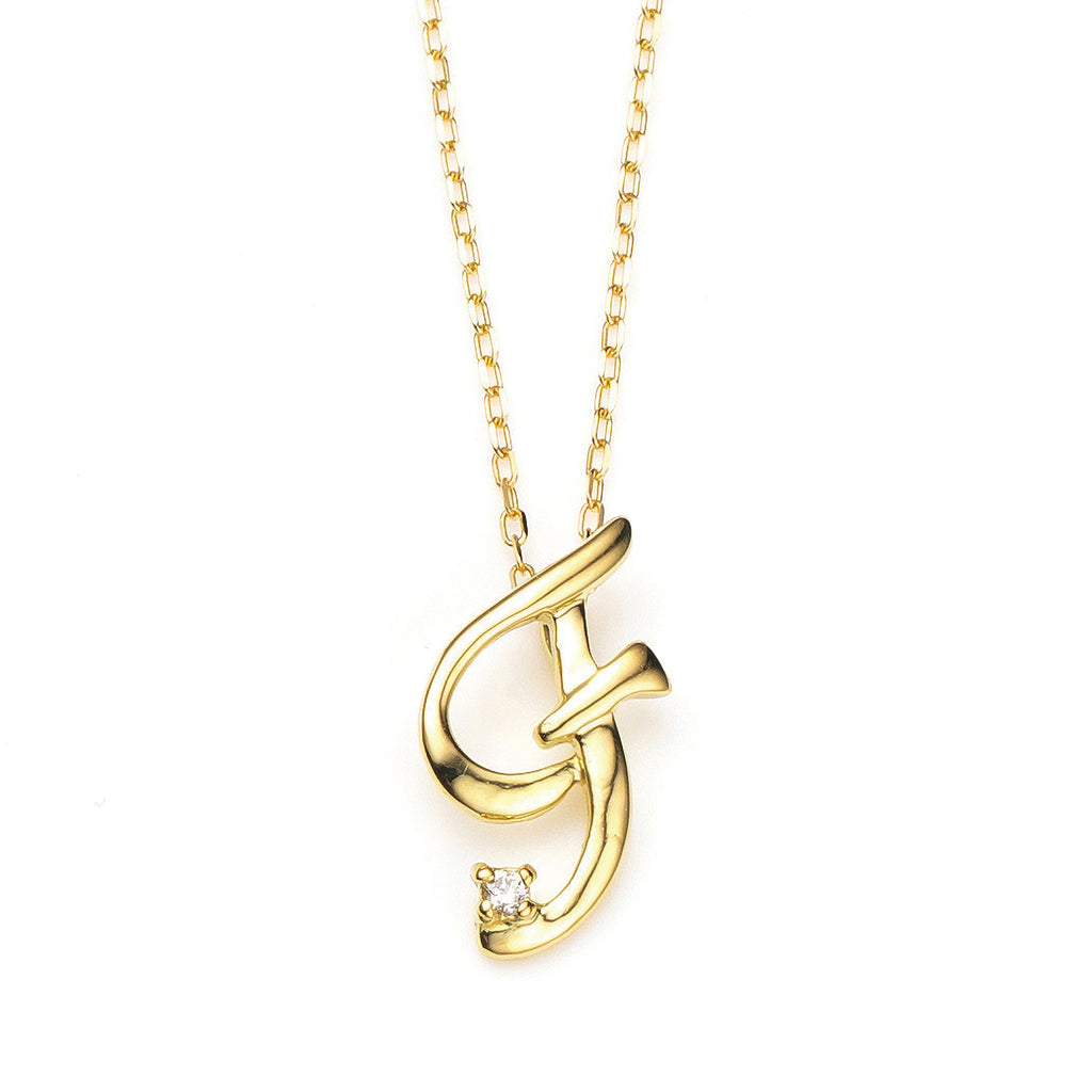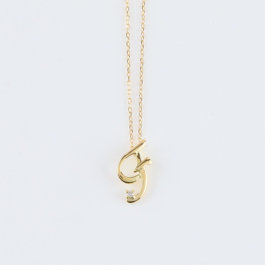 おしゃれな筆記体で描いたアルファベットにキラッと輝くメレダイヤを1石セットしました。