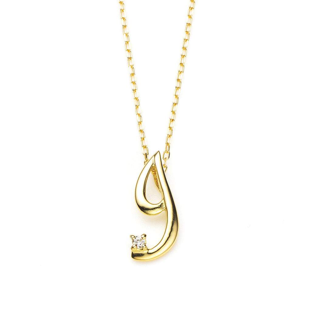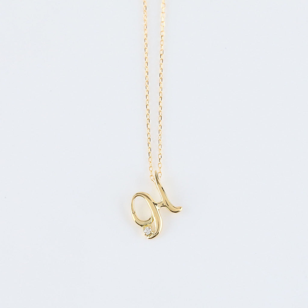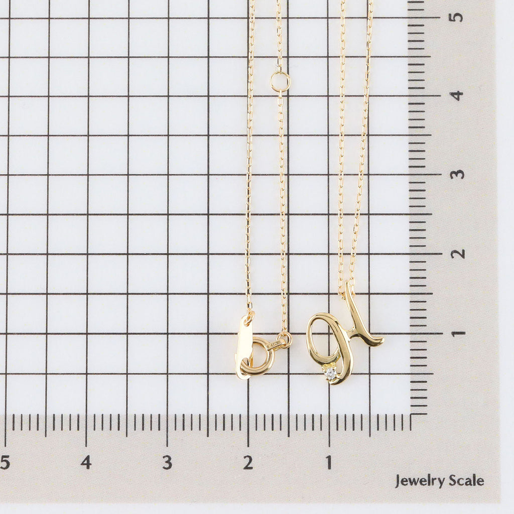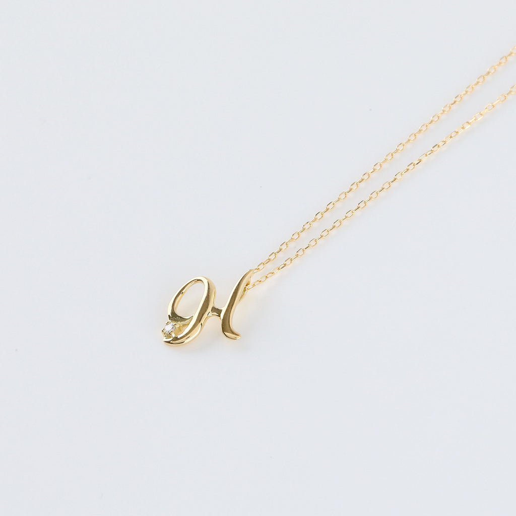 おしゃれな筆記体で描いたアルファベットにキラッと輝くメレダイヤを1石セットしました。