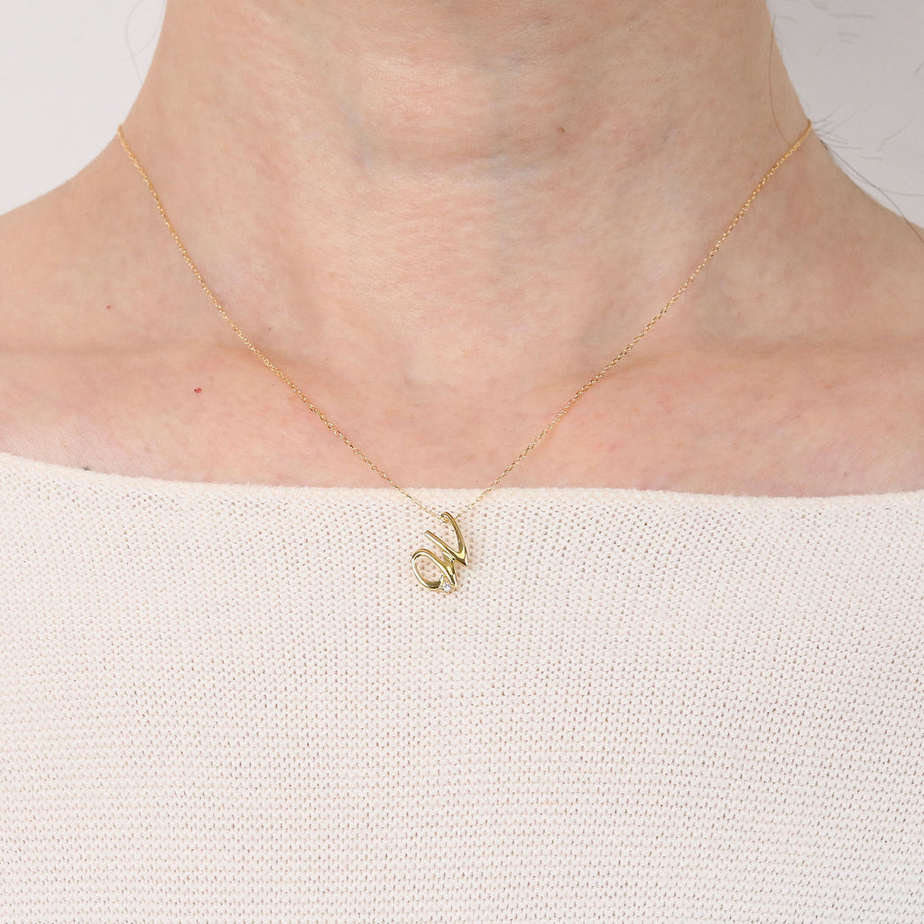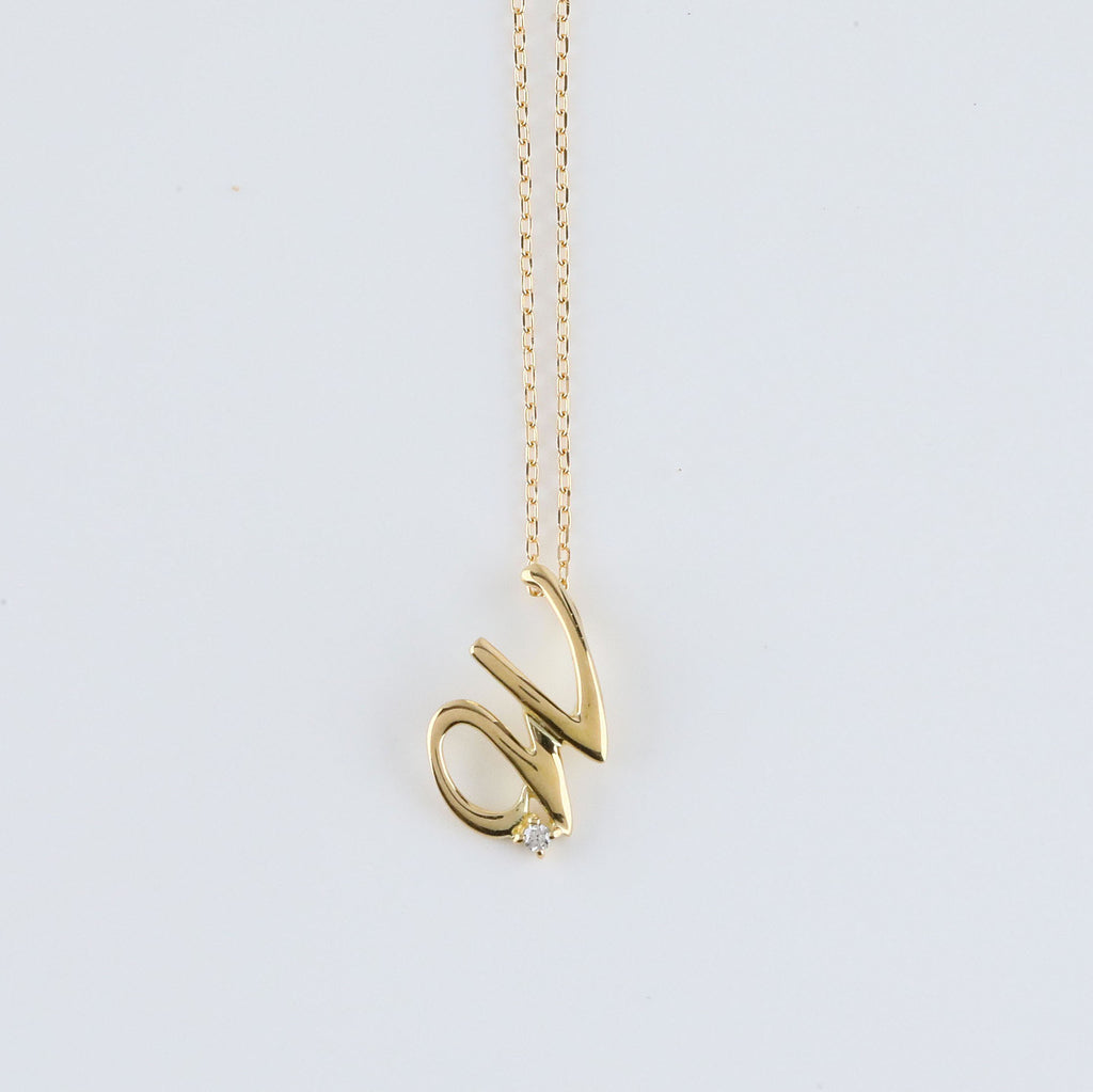 おしゃれな筆記体で描いたアルファベットにキラッと輝くメレダイヤを1石セットしました。