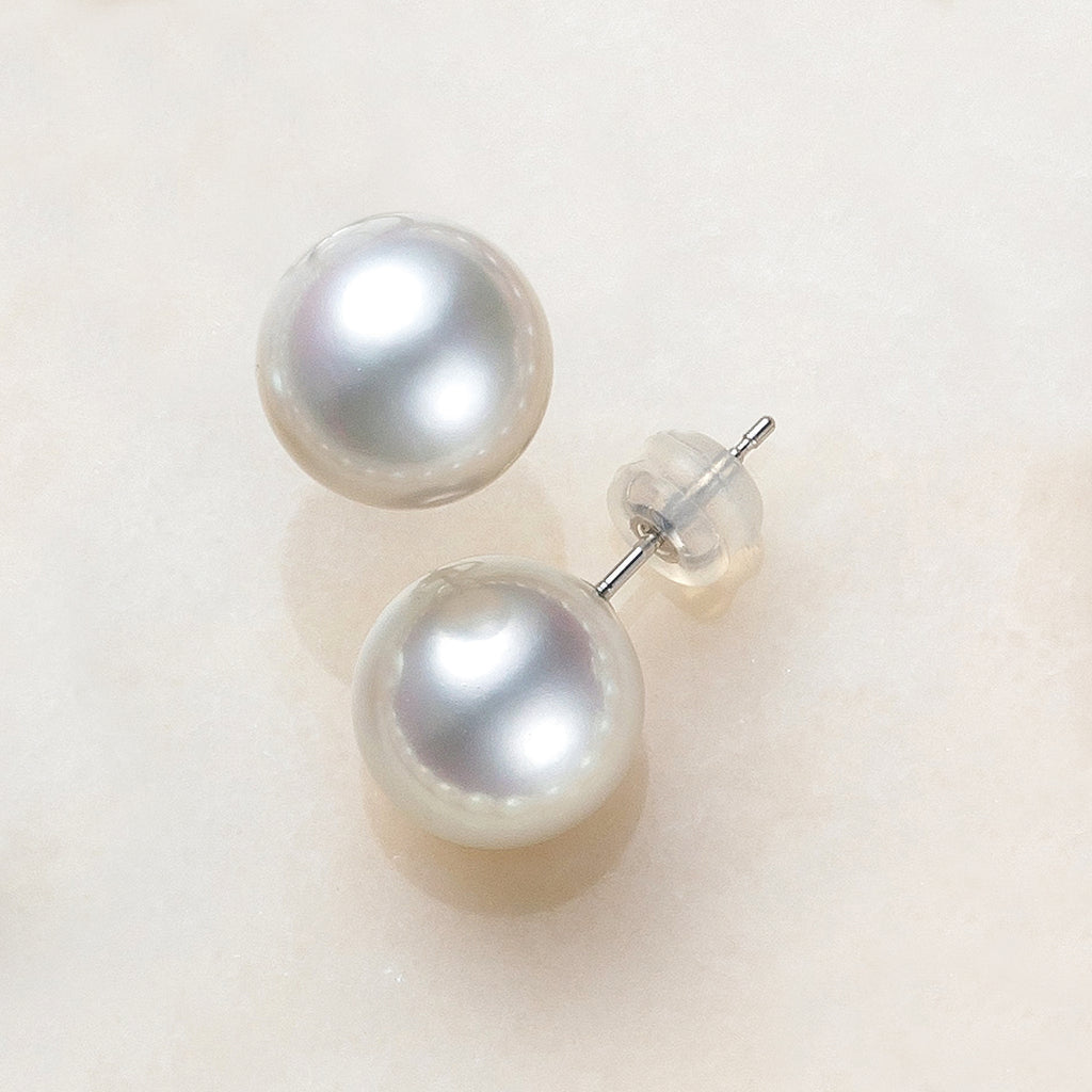装いを選ばず、オールマイティに使えるホワイト系淡水パールをプラチナ製のスタッドタイプピアスにしました。