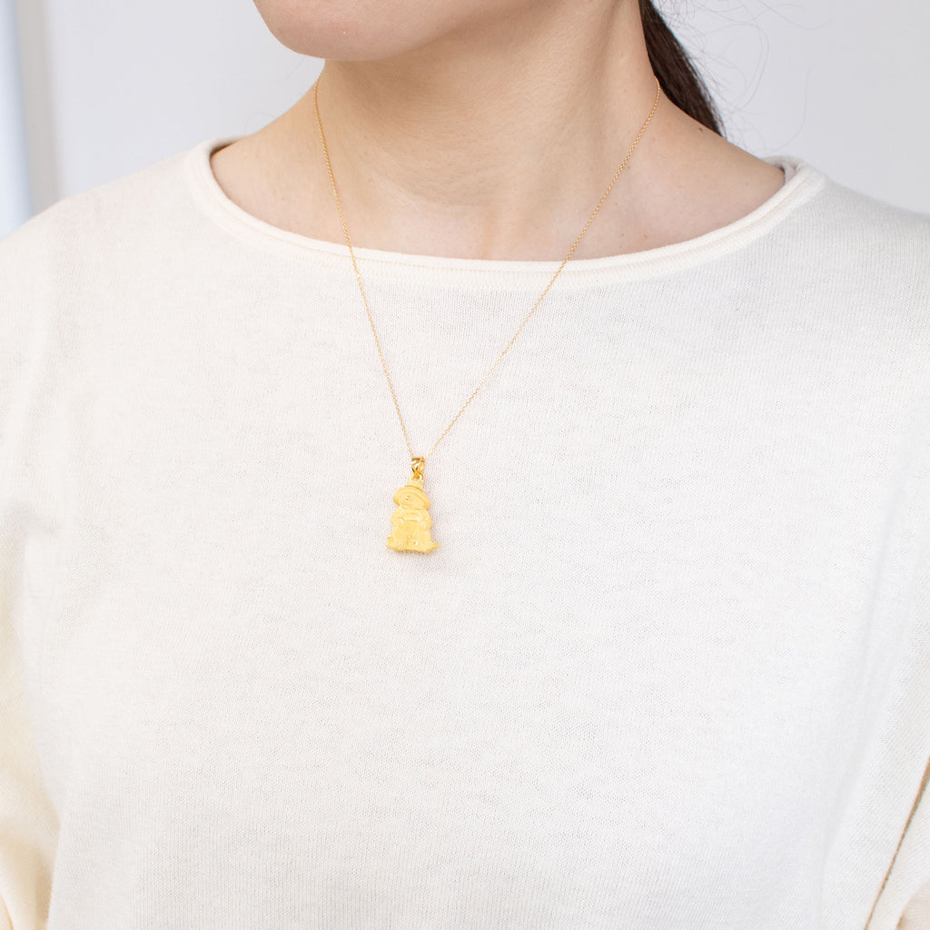 純金製のパディントンは中空製。見た目のボリューム感の割に軽量のつくりになっているので身に着けやすいネックレスです。留め具下5cmの箇所にアジャスター環が付いているので2段階の長さでお楽しみいただけます。
