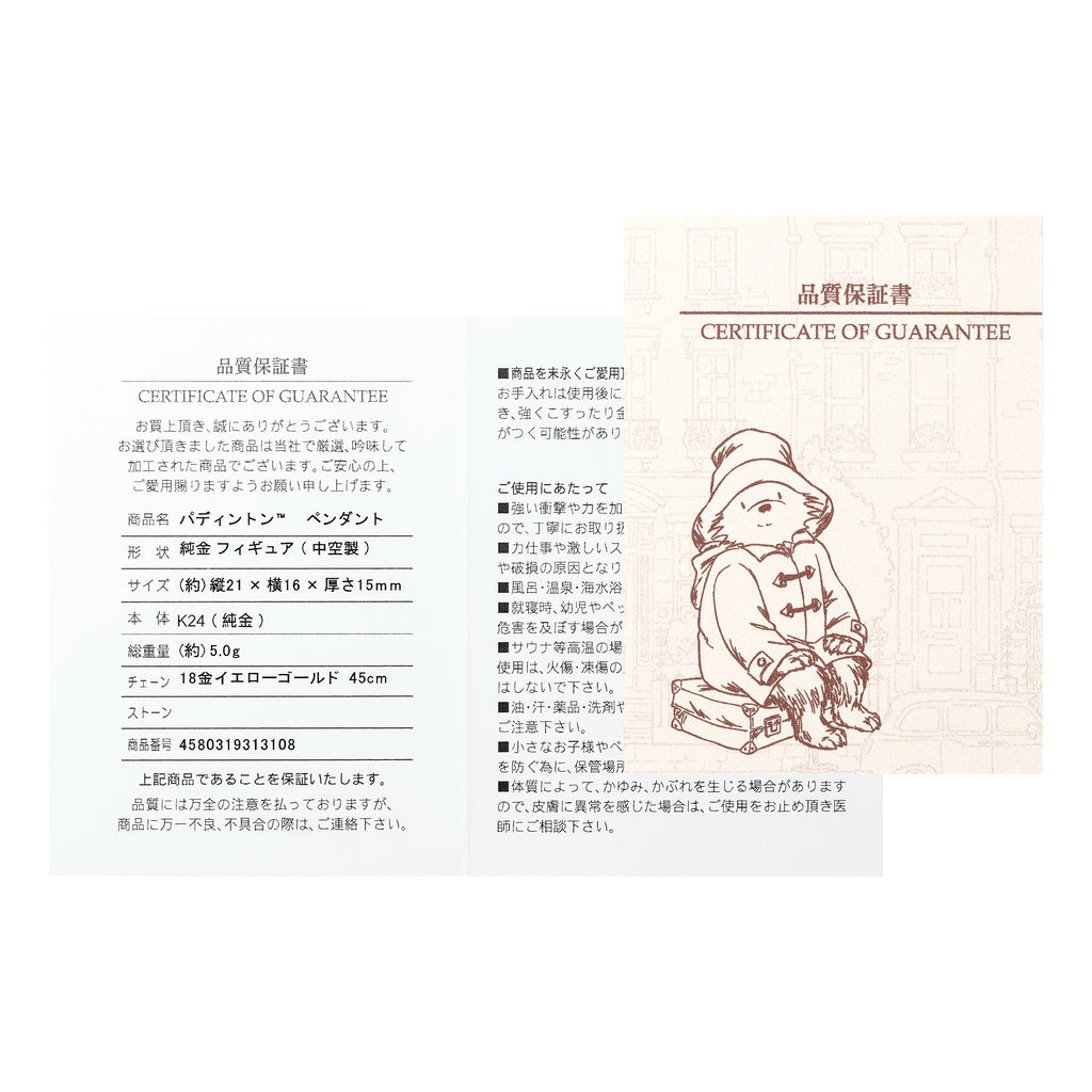 パディントンファンにはたまらない、ブック型のオリジナル専用ケースとキャラクターのイラストが描かれた保証書付きです。
