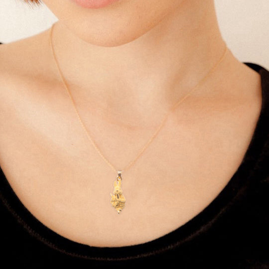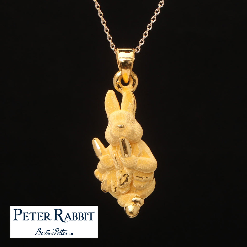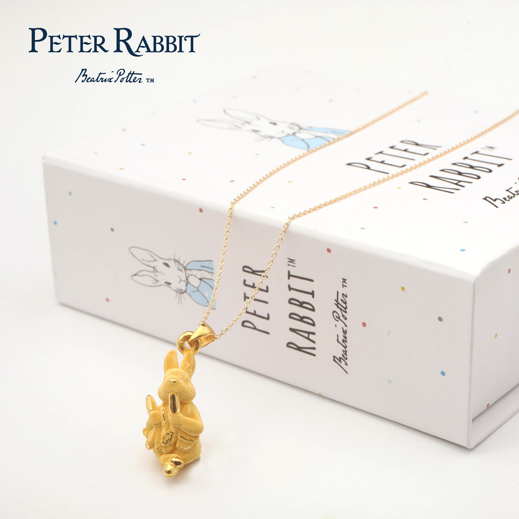 世界中で愛されているビアトリクス・ポターの作品の中で最もよく知られたキャラクター、ピーターラビットのネックレスです。