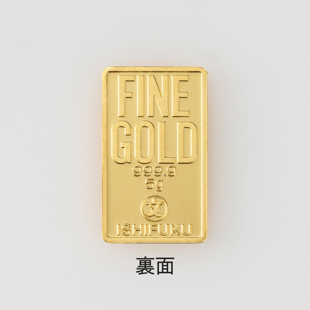 本製品は純金製で、純度99.99%以上の品位と定められており、世界中どこででも認められる仕様となります。本体裏にLBMA(ロンドン地金市場協会)認定の石福金属興行株式会社の業者マークが刻印されたグッド・デリバリー・バーです。