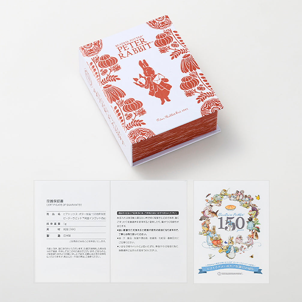 ピーターラビットファンにはたまらない、ブック型の専用ケースと保証書付きです。
