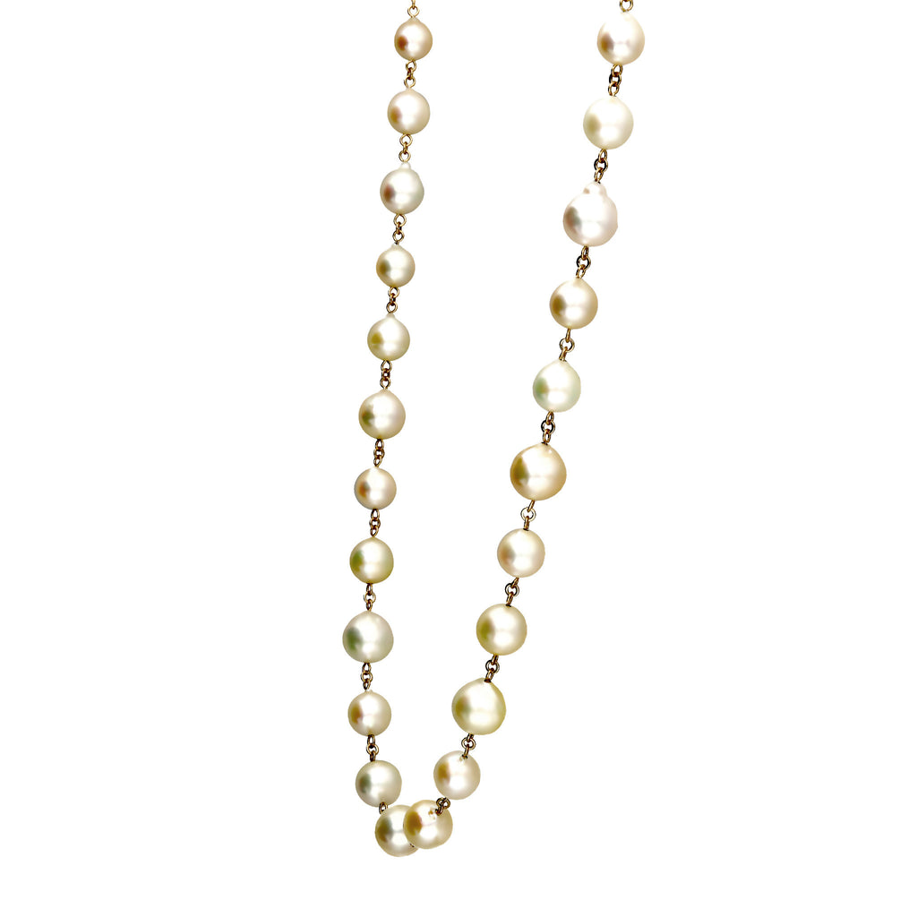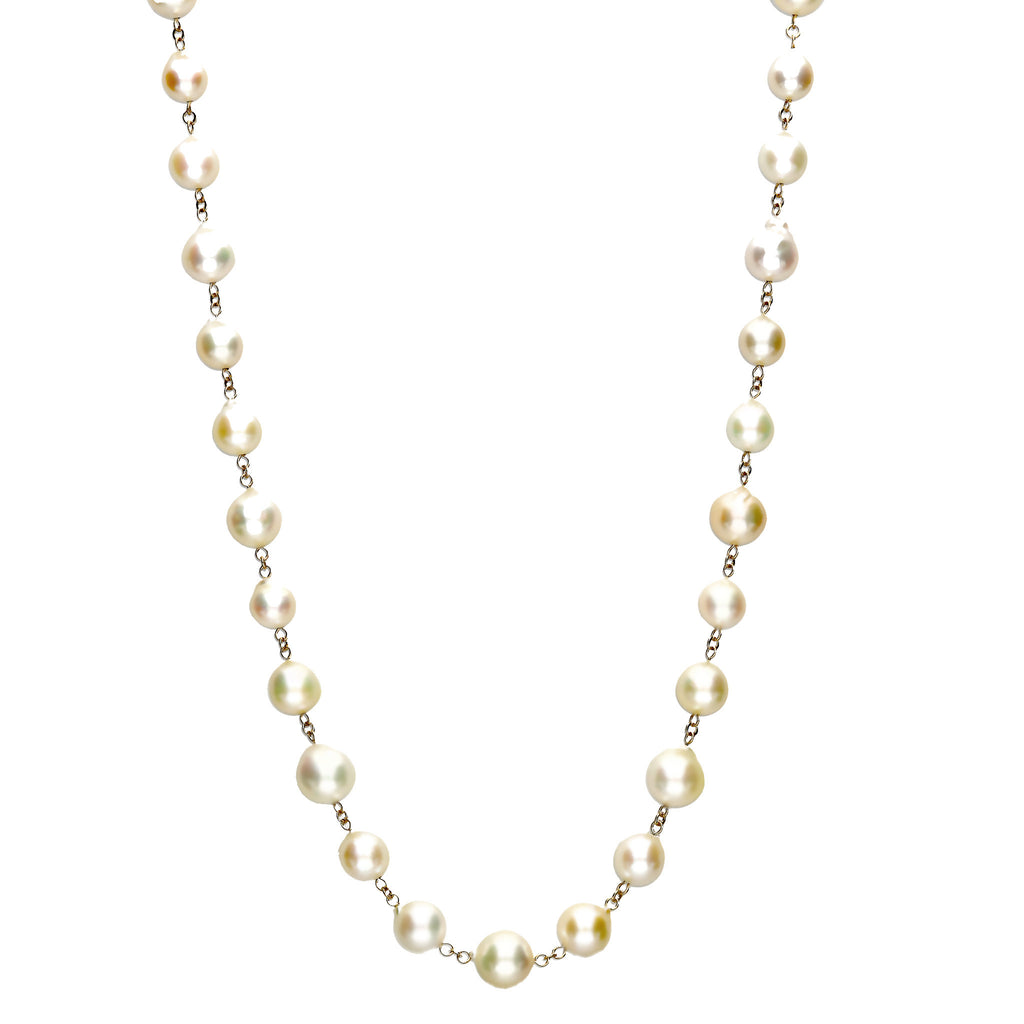 てりのよいアコヤのバロック珠をステーションに留めたネックレスです。