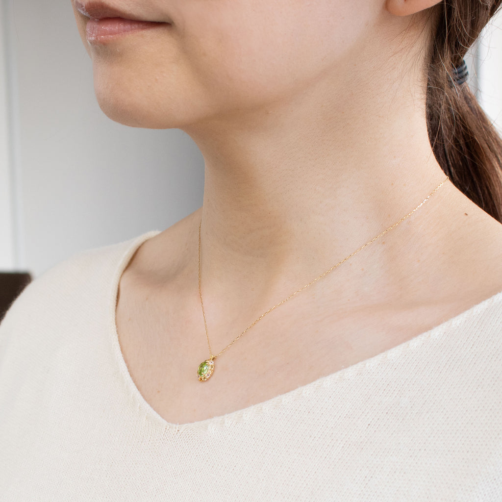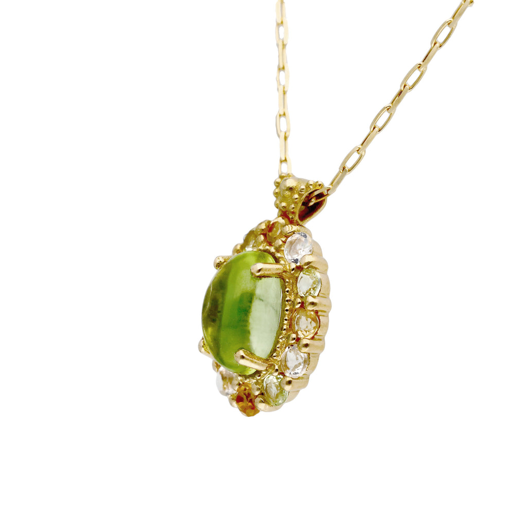 【 K18 ペリドット 取り巻きデザインネックレス 】