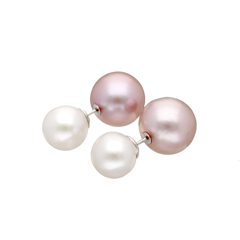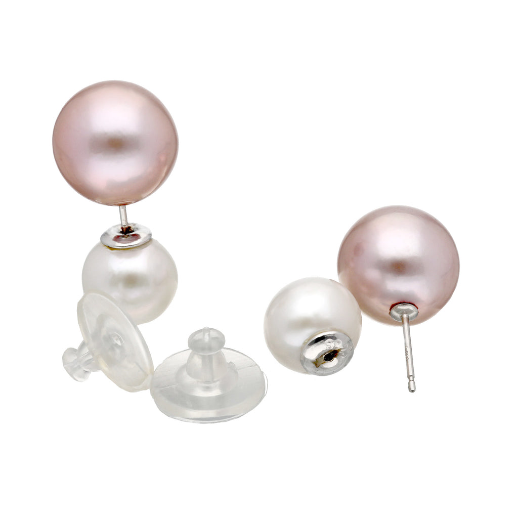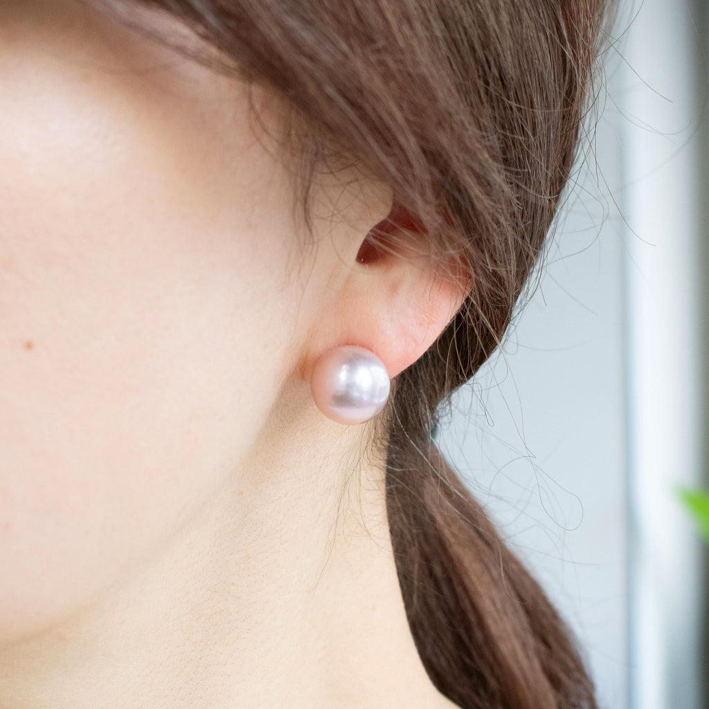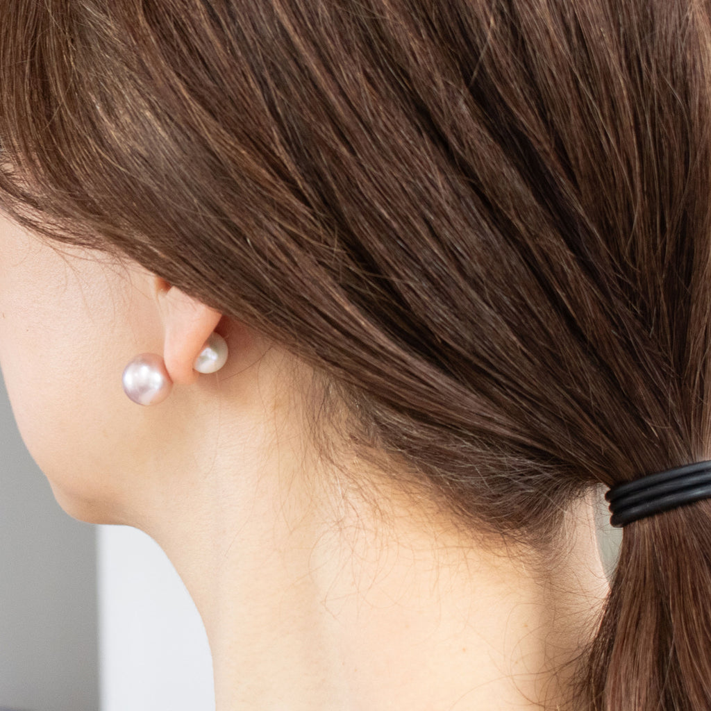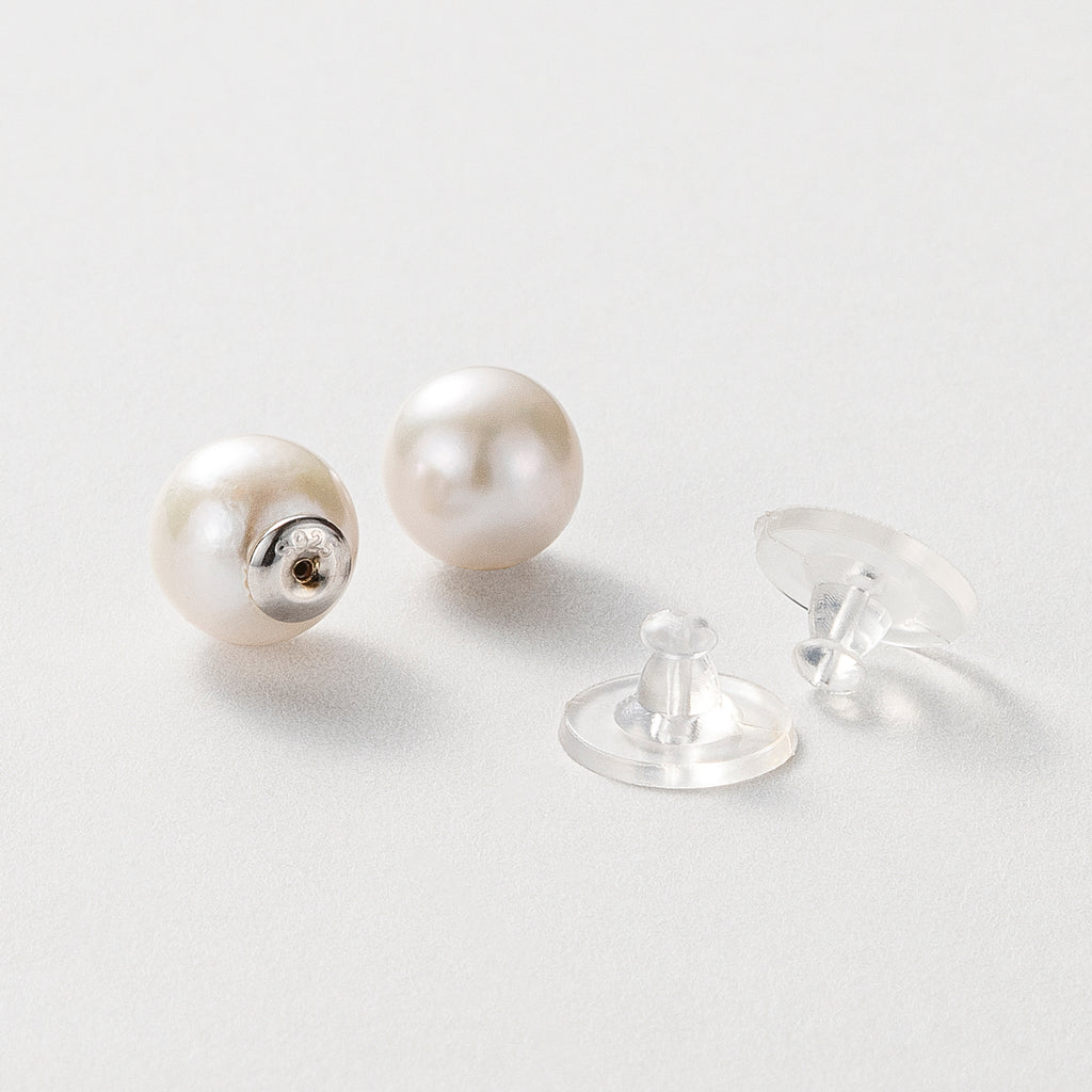 ホワイトカラーの淡水パールのピアスキャッチは、耳たぶの前に着けても後ろに着けても使えるお得な仕様。