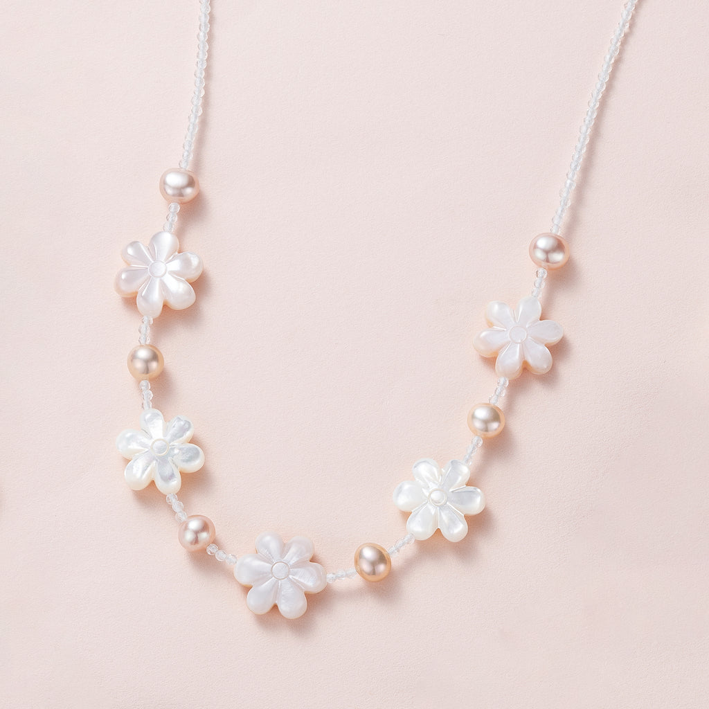 【 シェル タンスイパール フラワーモチーフネックレス 】