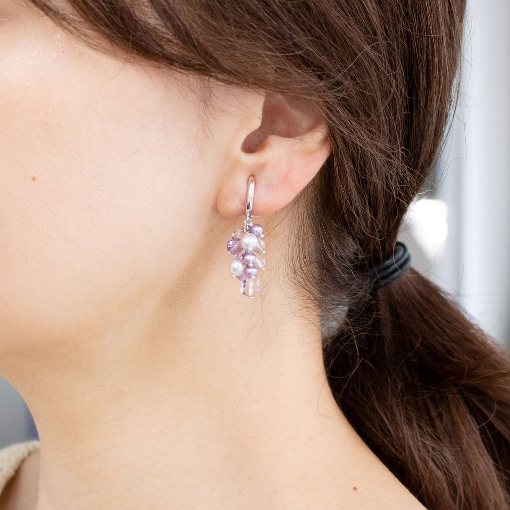 まるでブドウの房のようにボリューム感のある華やかな印象のイヤリングです。