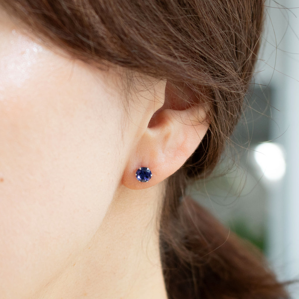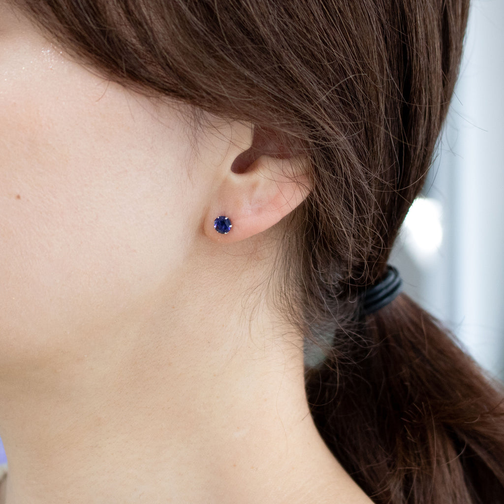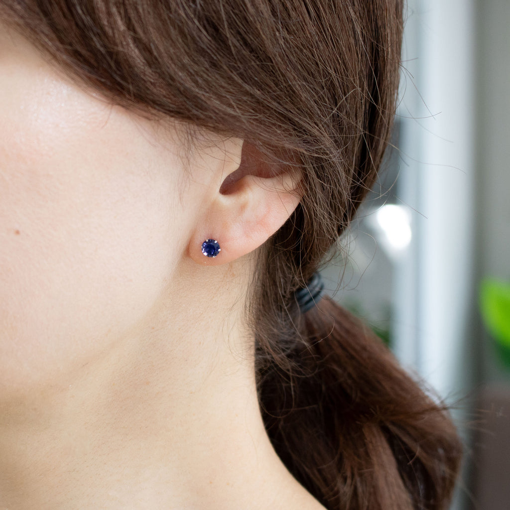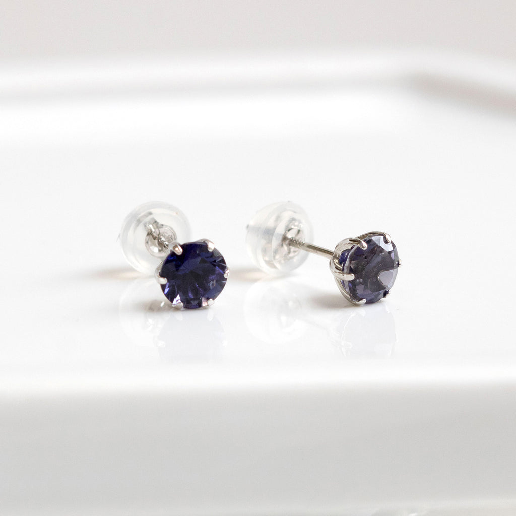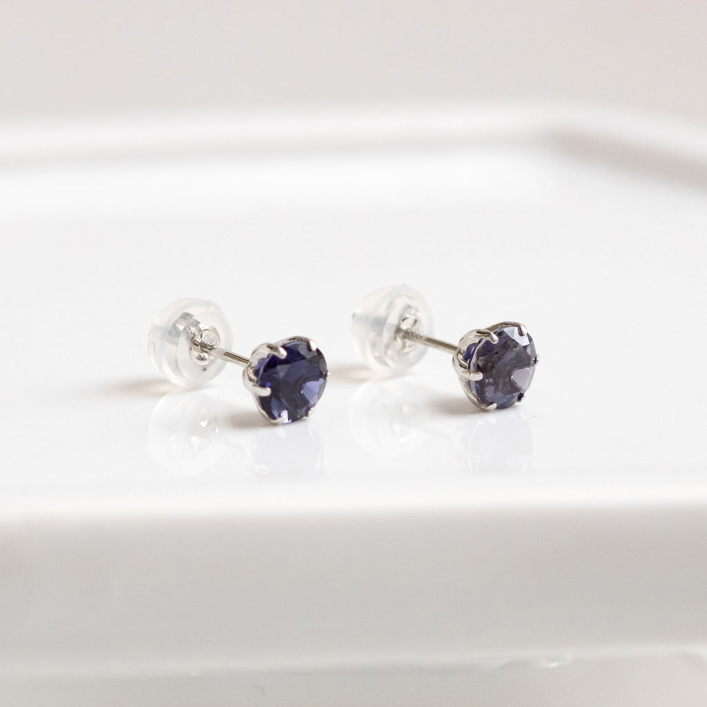 石を正面から見た時に美しいすみれ色が現れるようにカットされたアイオライトを厳選して、シンプルなスタッドタイプのピアスにしました。