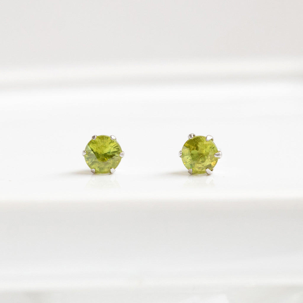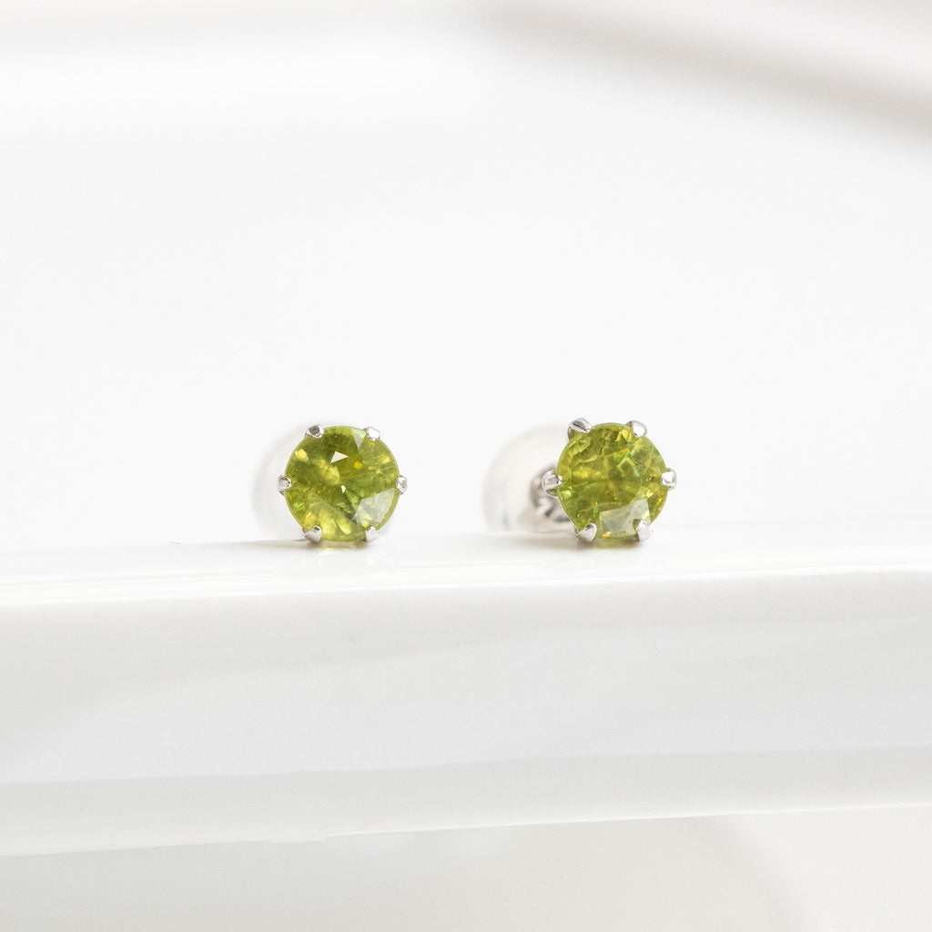 小粒ながらも美しいイエローグリーン系のスフェーンを厳選してピアスに仕立てました。