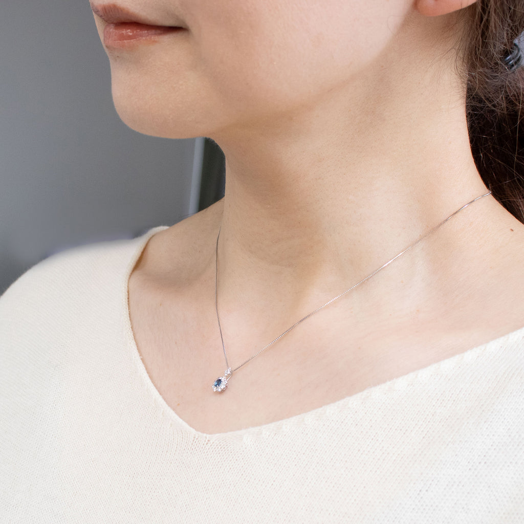 このネックレスに使われているブルースピネルは、ブルースピネルの中でも特に“コバルトスピネル”と呼ばれることのある大変稀少なタイプになります。