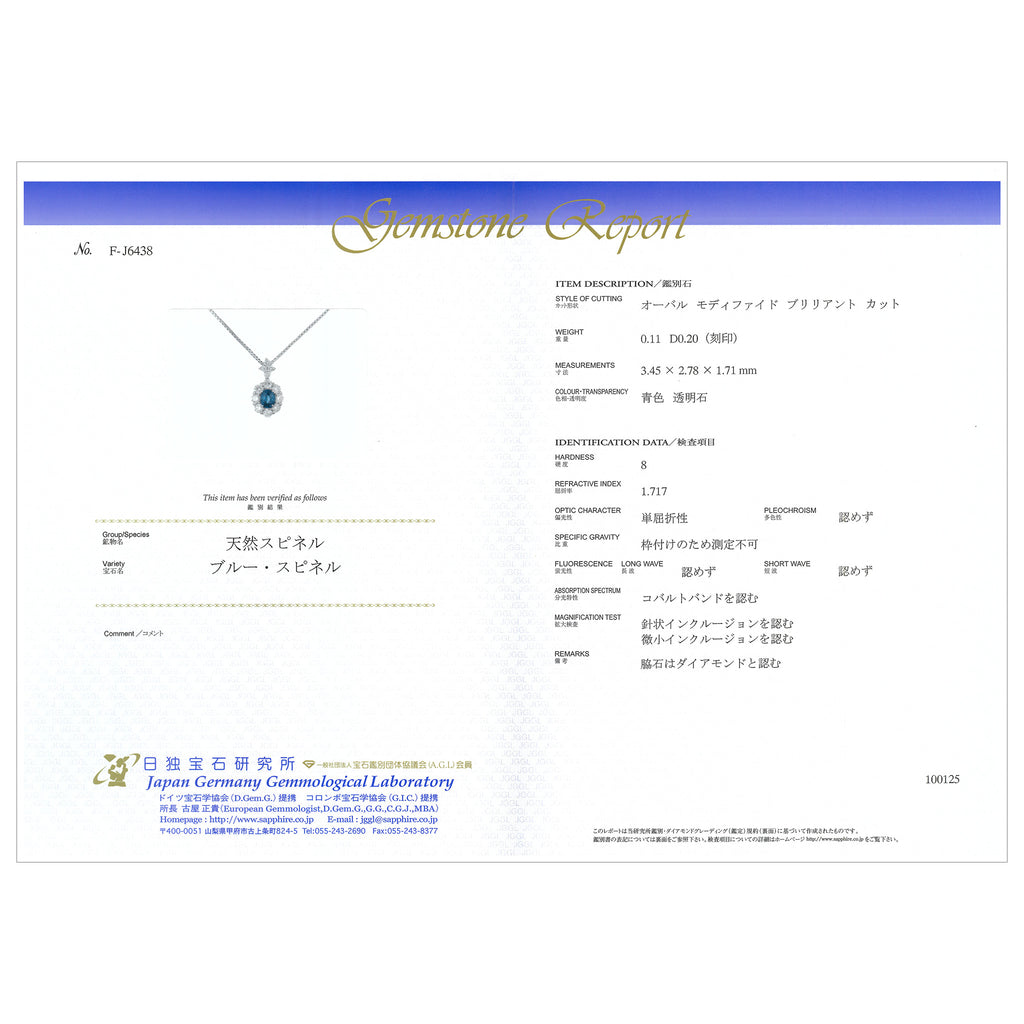 ※備考欄に「コバルトバンドを認む」という記載のある日独宝石研究所の鑑別書を付けてお届けいたします。