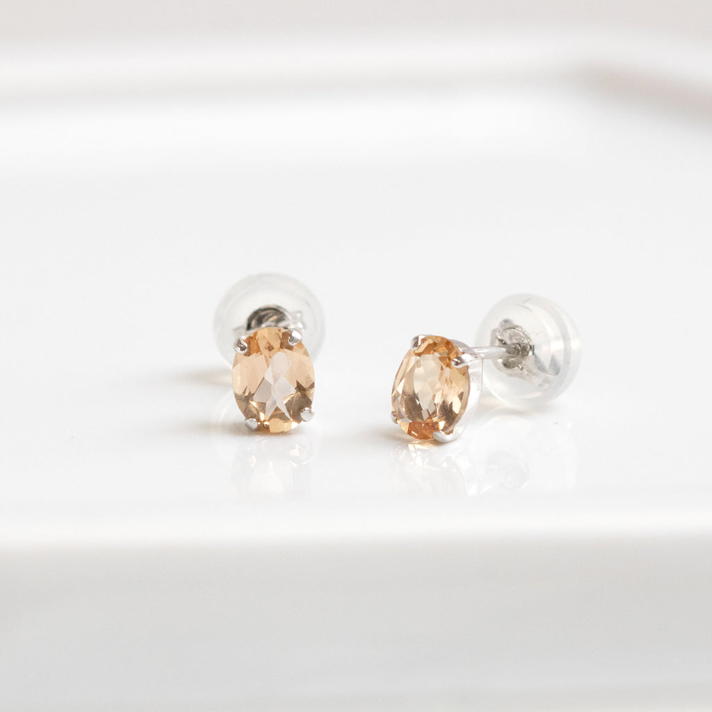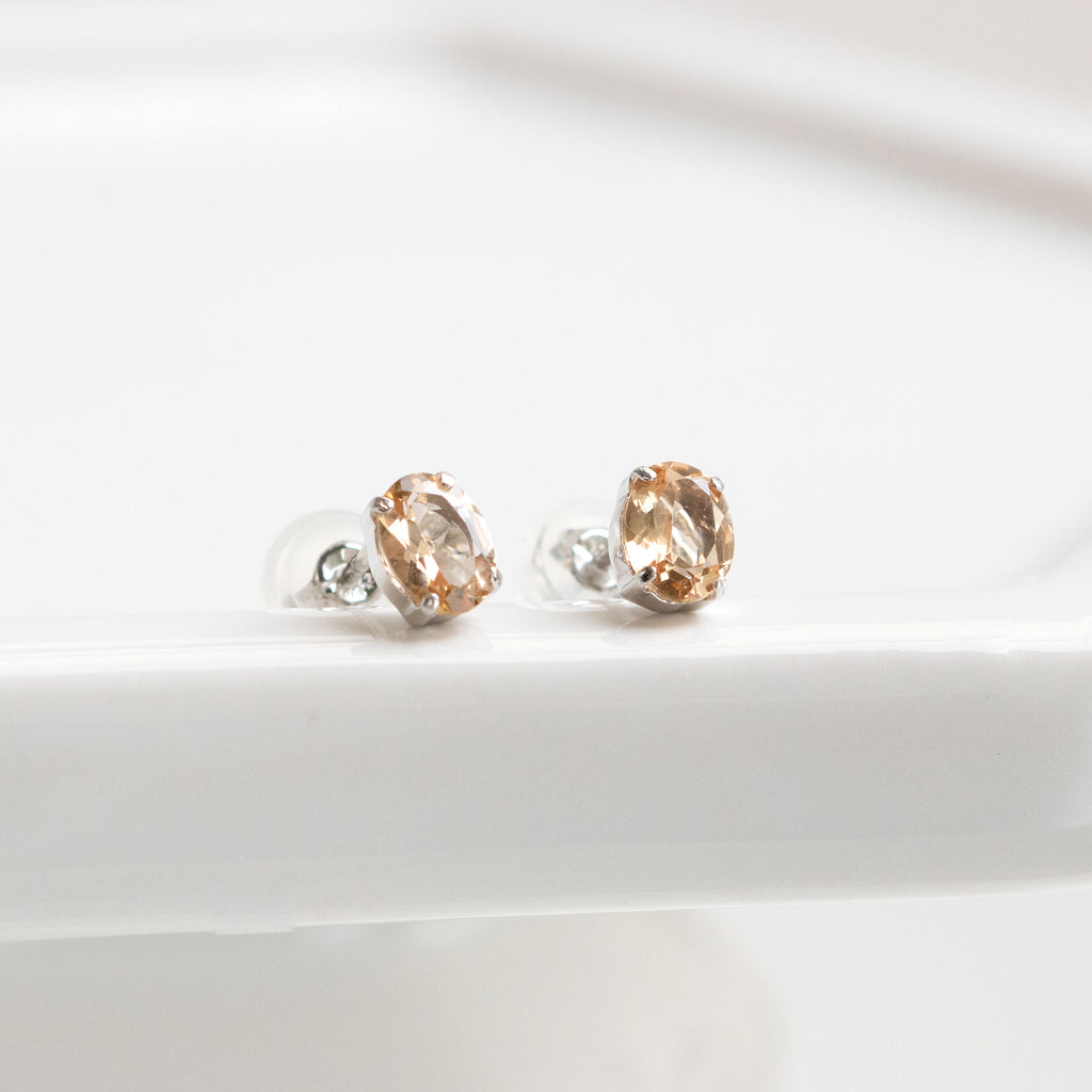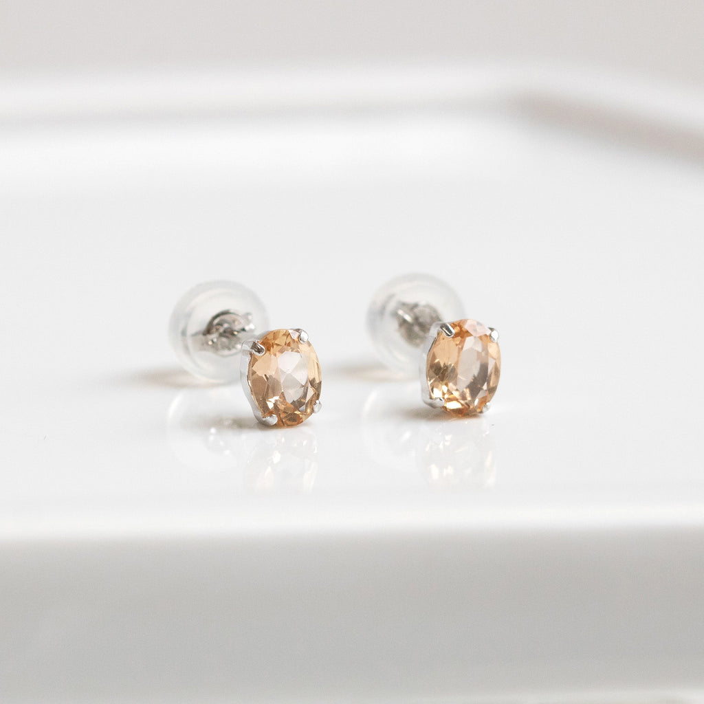 まるでシェリー酒のようなピンク色とオレンジ色が混ざり合ったような絶妙な色が美しいインペリアルトパーズを使ったピアスです。