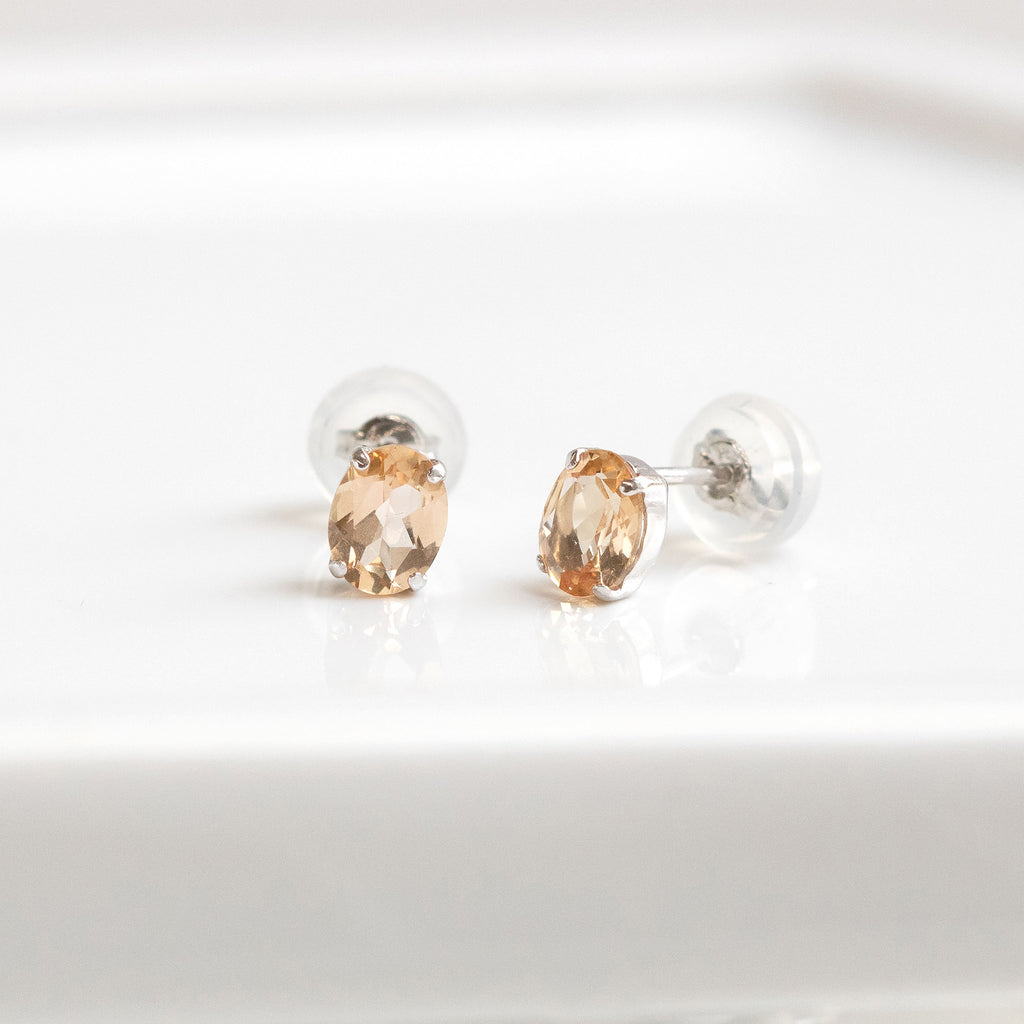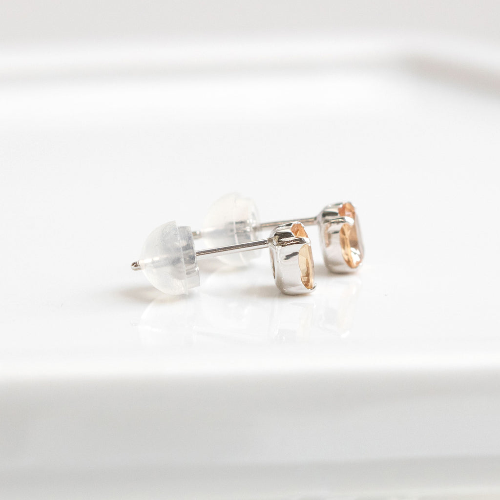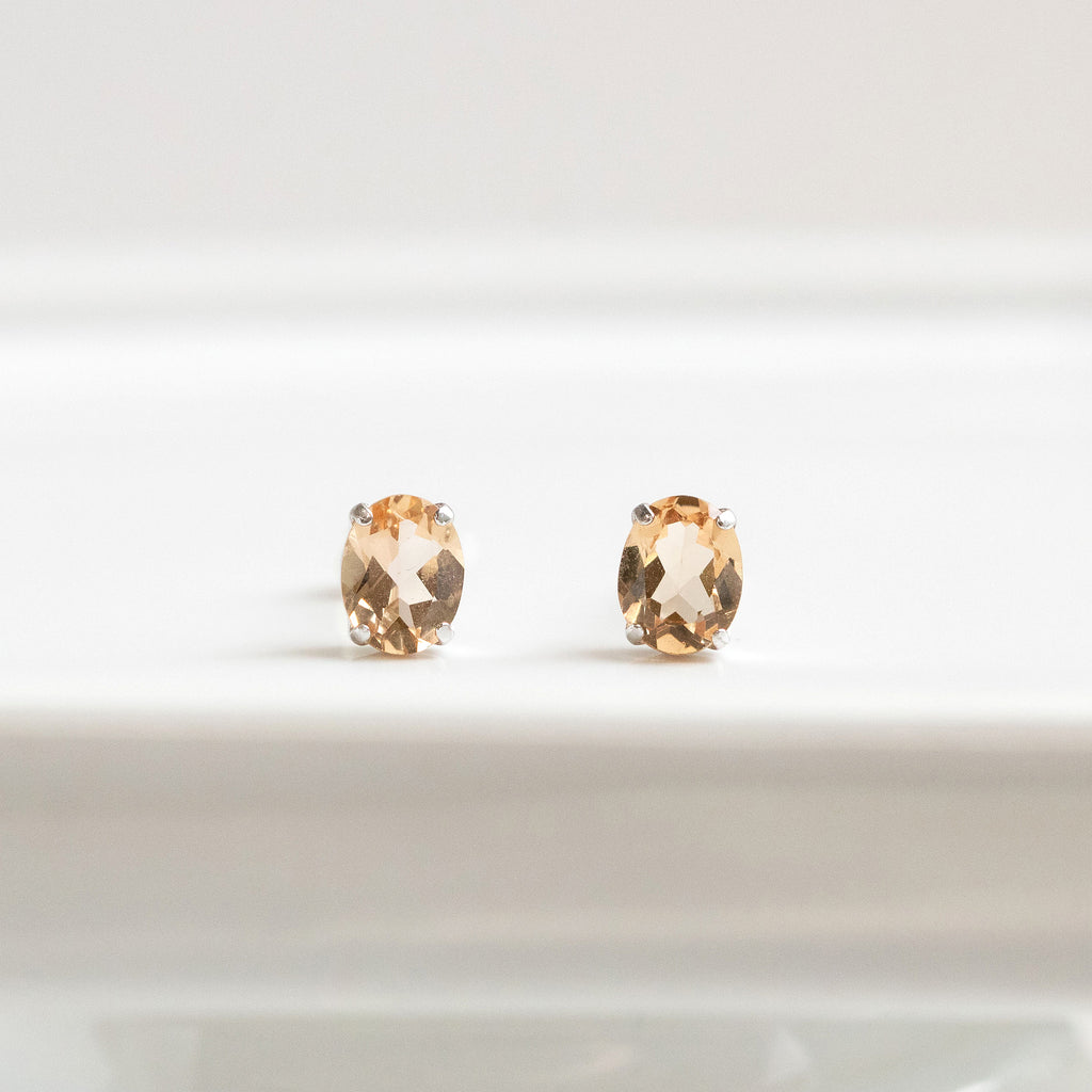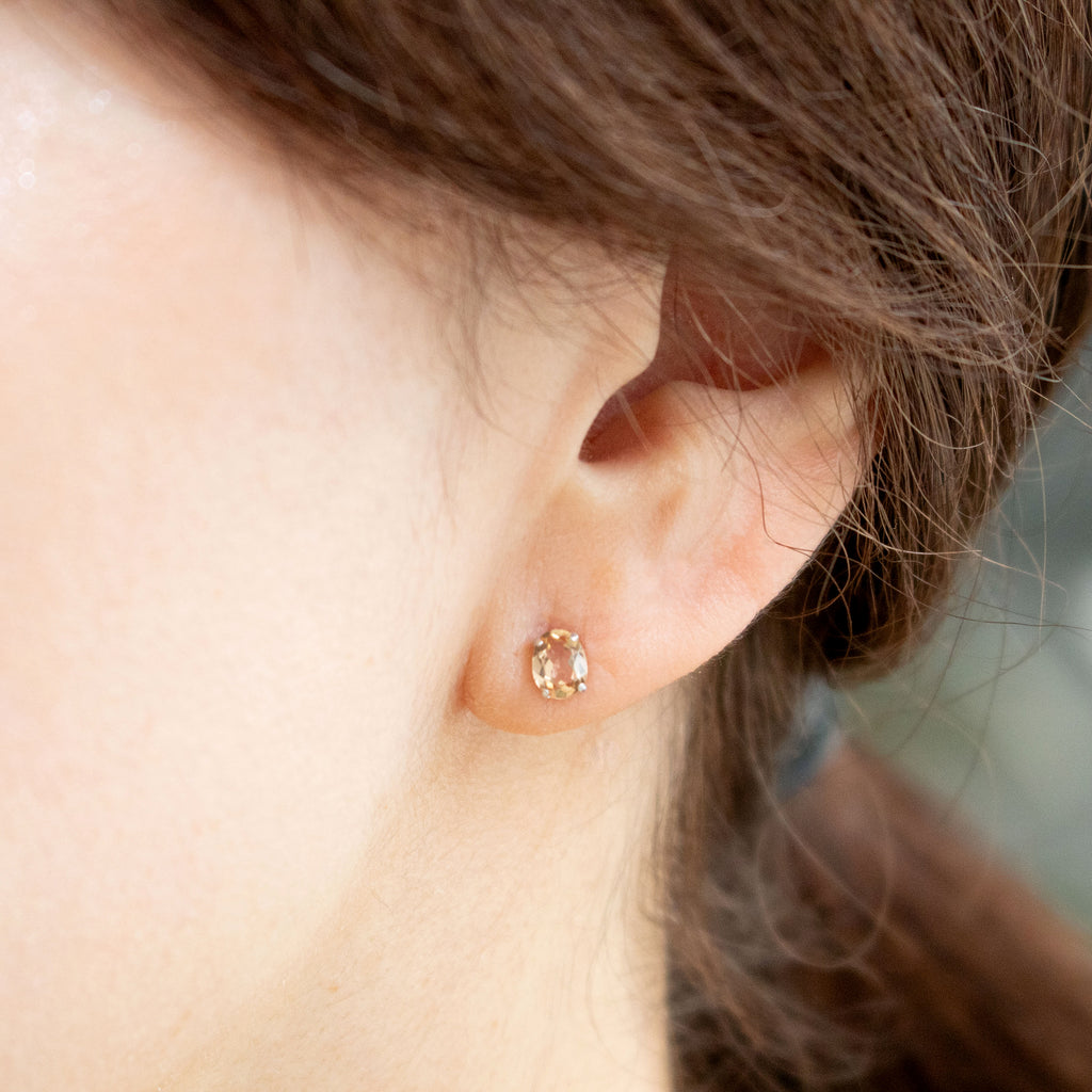 まるでシェリー酒のようなピンク色とオレンジ色が混ざり合ったような絶妙な色が美しいインペリアルトパーズを使ったピアスです。