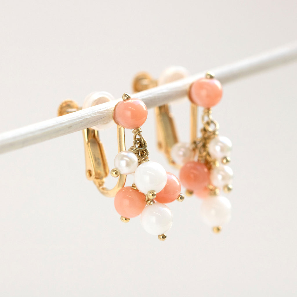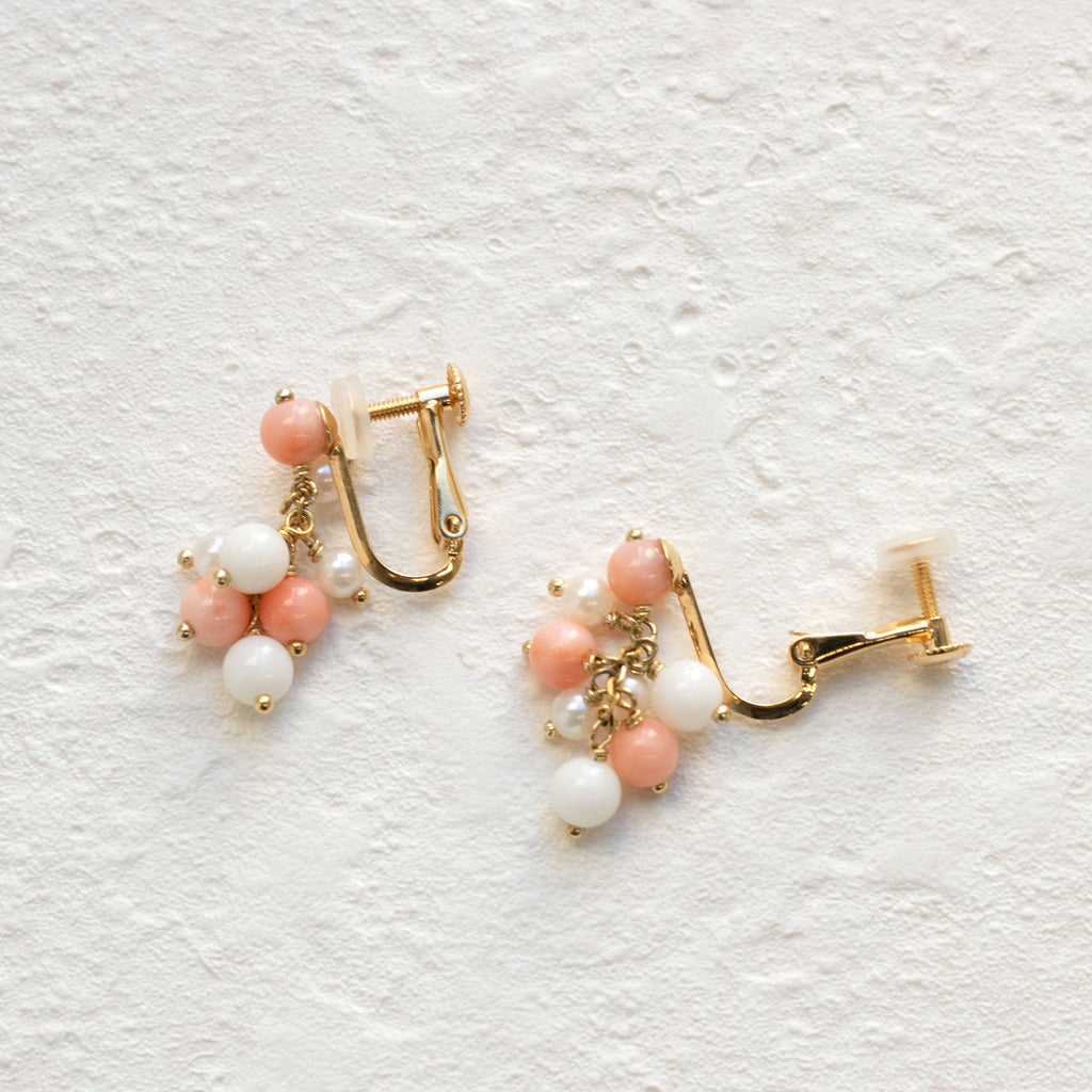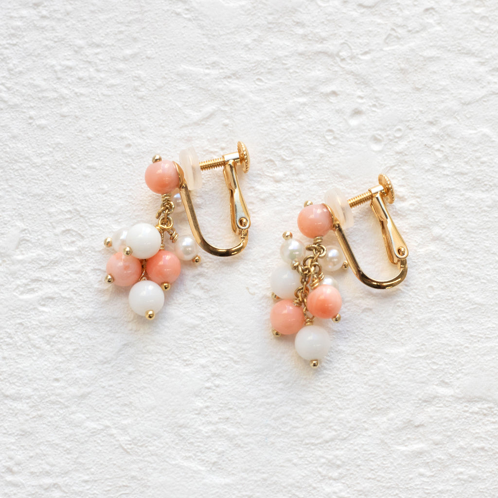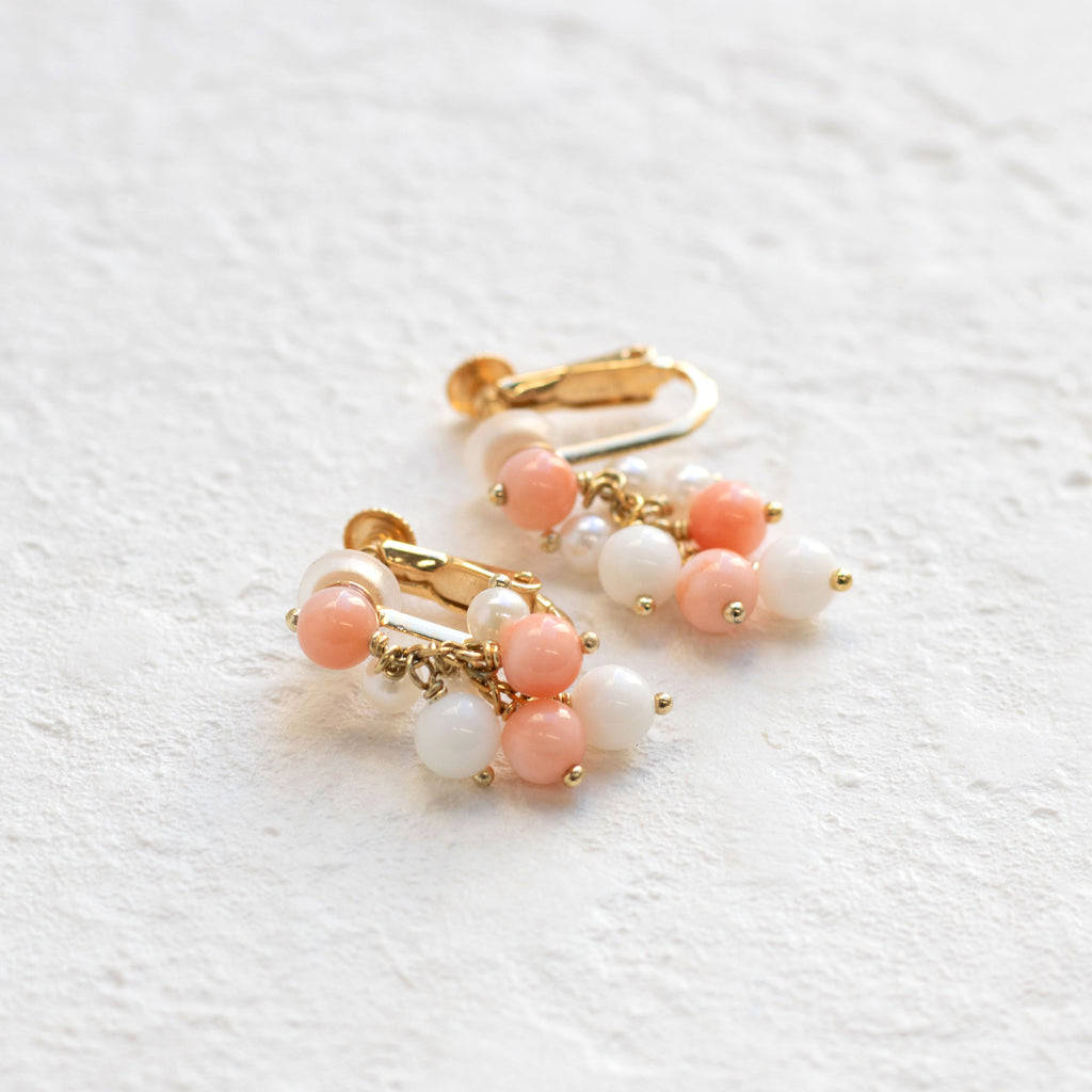 3月の誕生石でもあるサンゴを使ったイヤリングです。