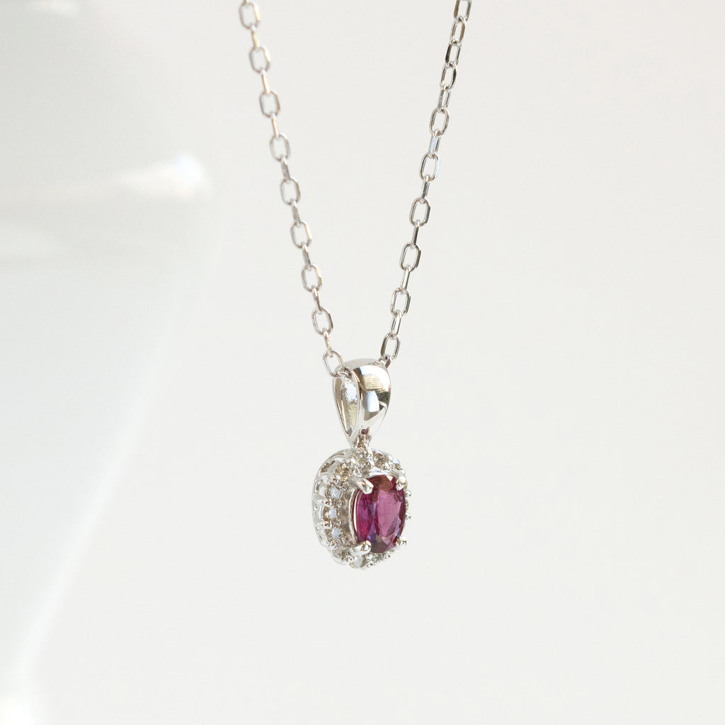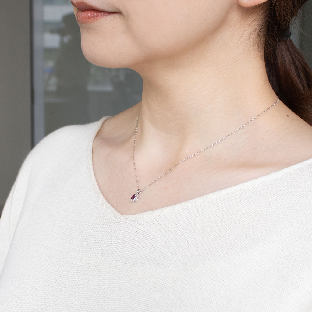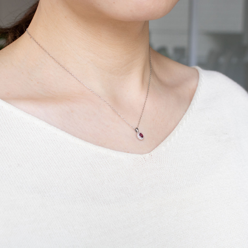 小粒ながらもてりがよく、鮮やかな赤色がきれいなルビーを使ったネックレスです。