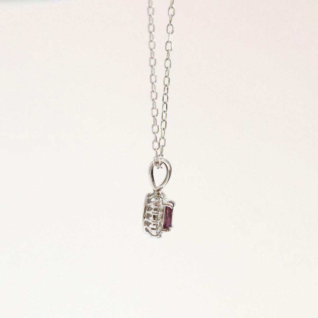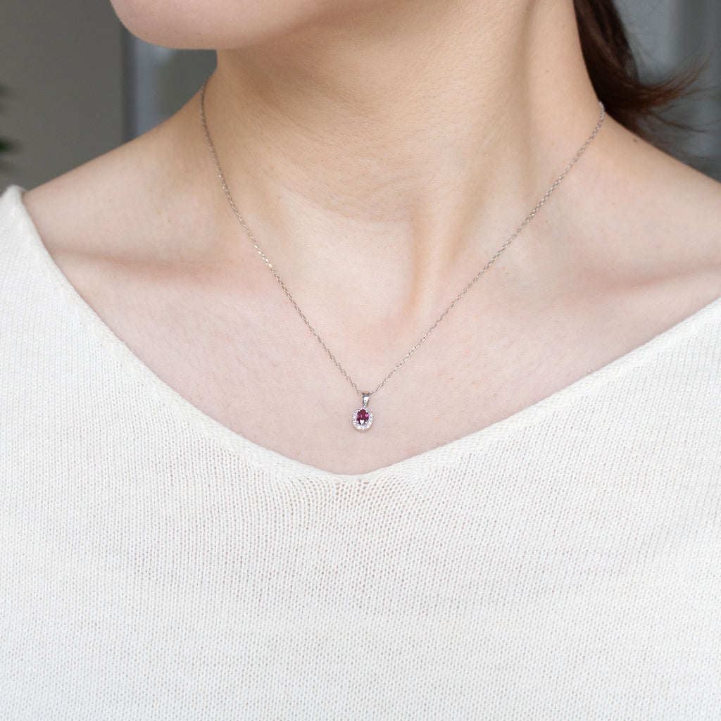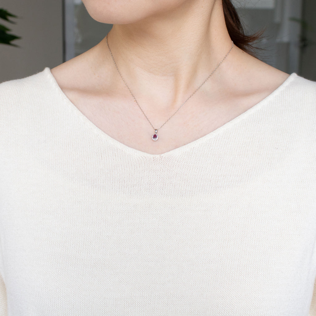 小粒ながらもてりがよく、鮮やかな赤色がきれいなルビーを使ったネックレスです。
