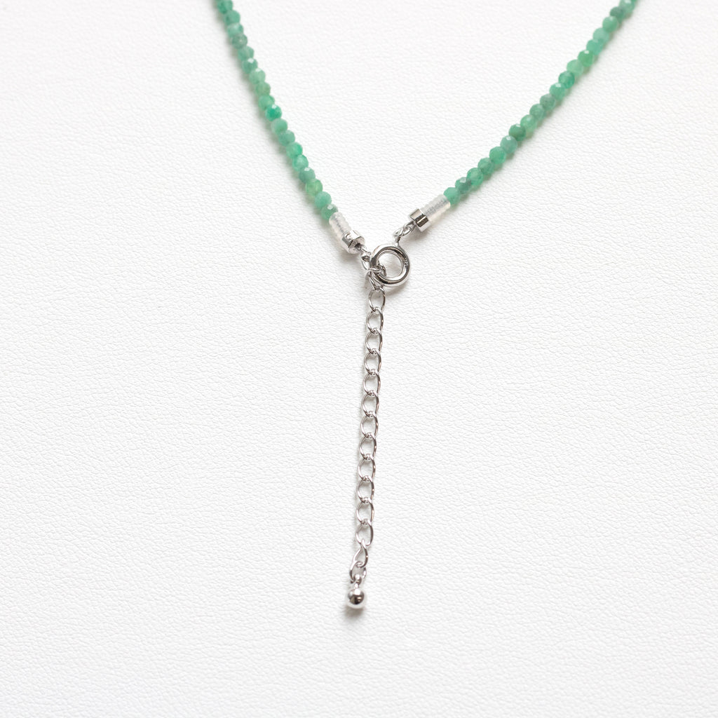 見る者を癒してくれる美しいグリーンが魅力的なエメラルド。キラキラと輝くカットを施したエメラルドのビーズを連ねたネックレスです。