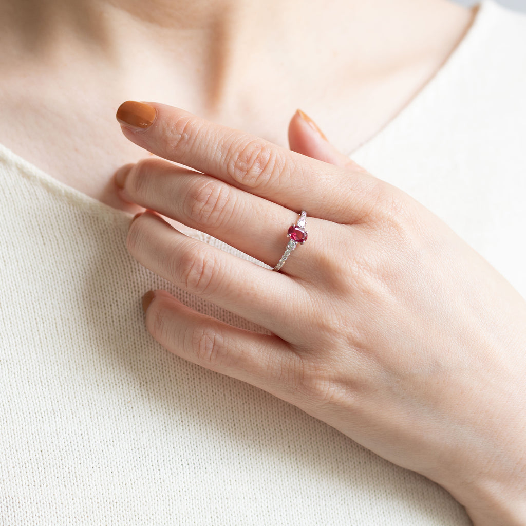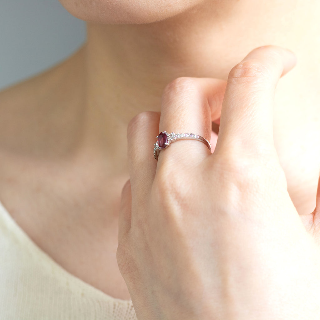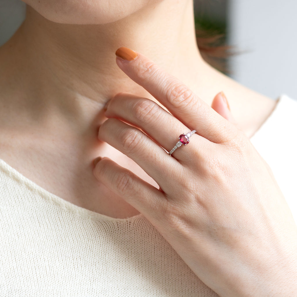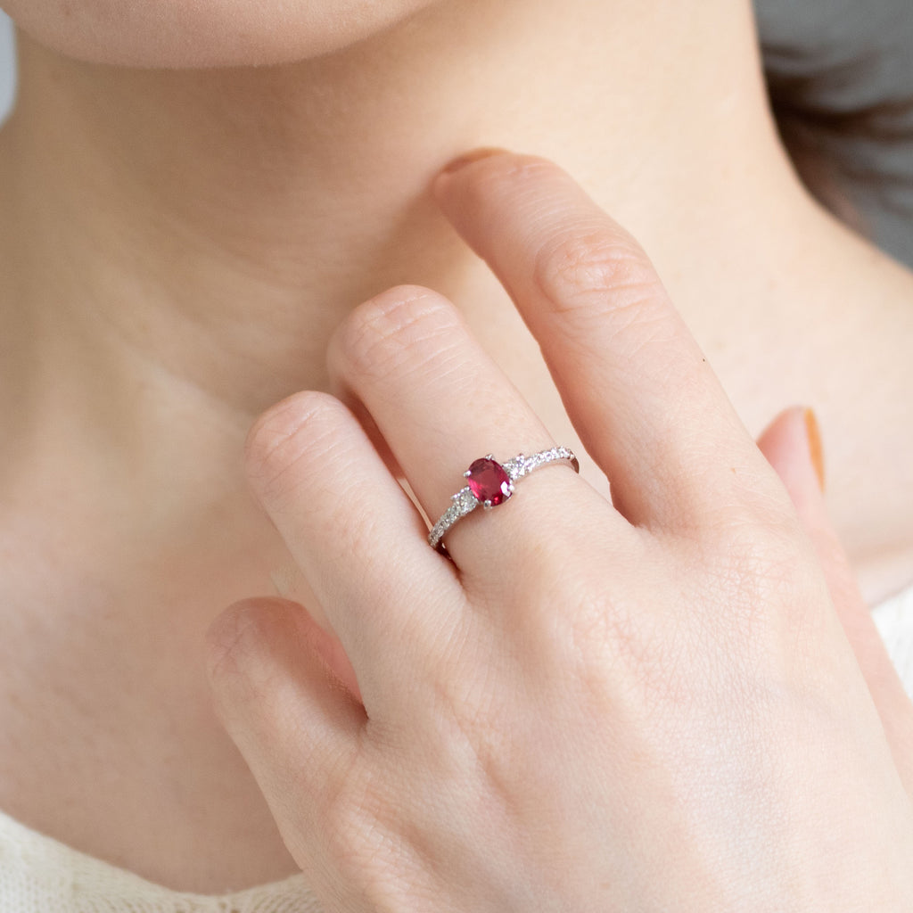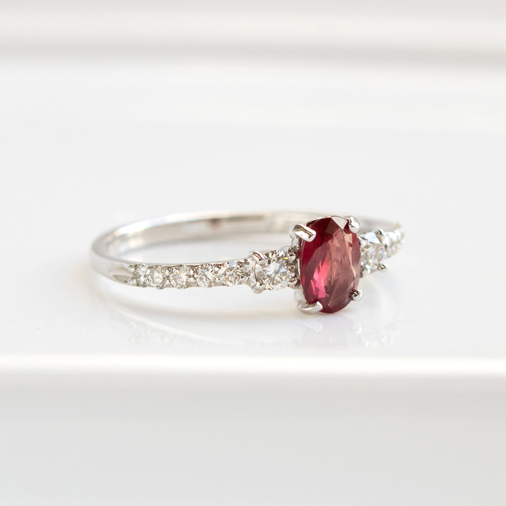 ベーシックなオーバルシェイプのルビーを使ったリングです。