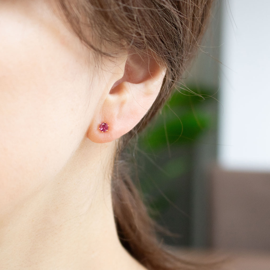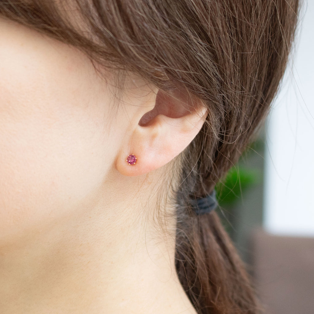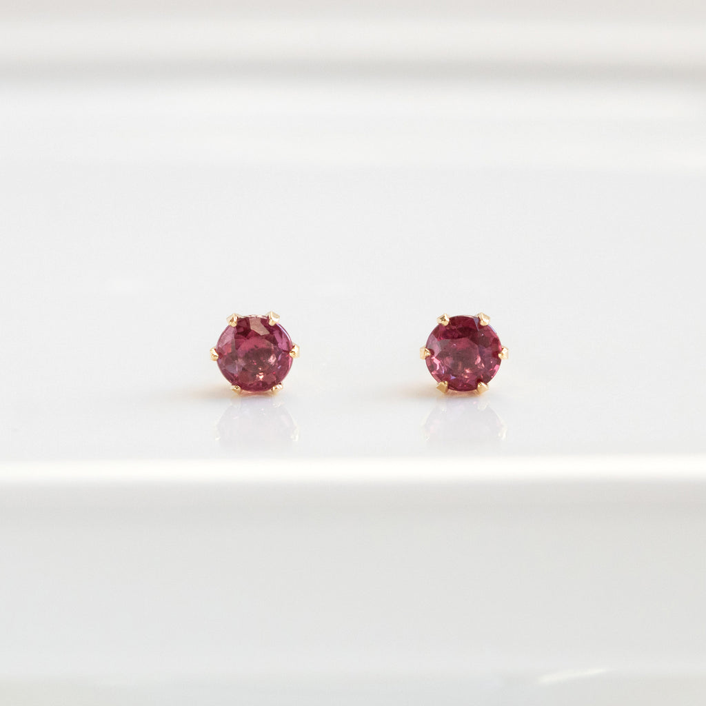 キラキラと輝くラウンドカットのルビーをベーシックなスタッドタイプのピアスに仕立てました。